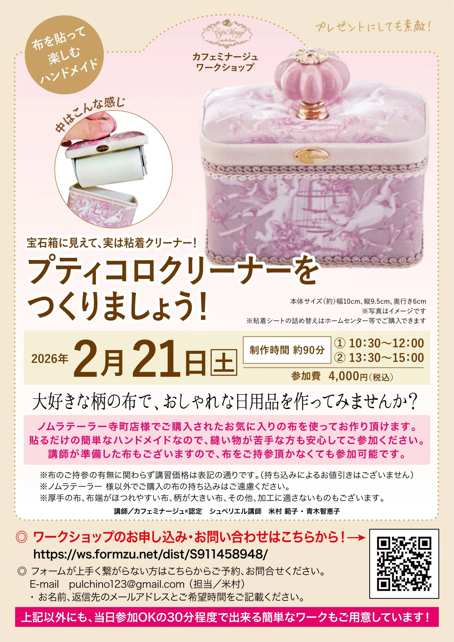 2026年1月・2月のワークショップのご案内です。
