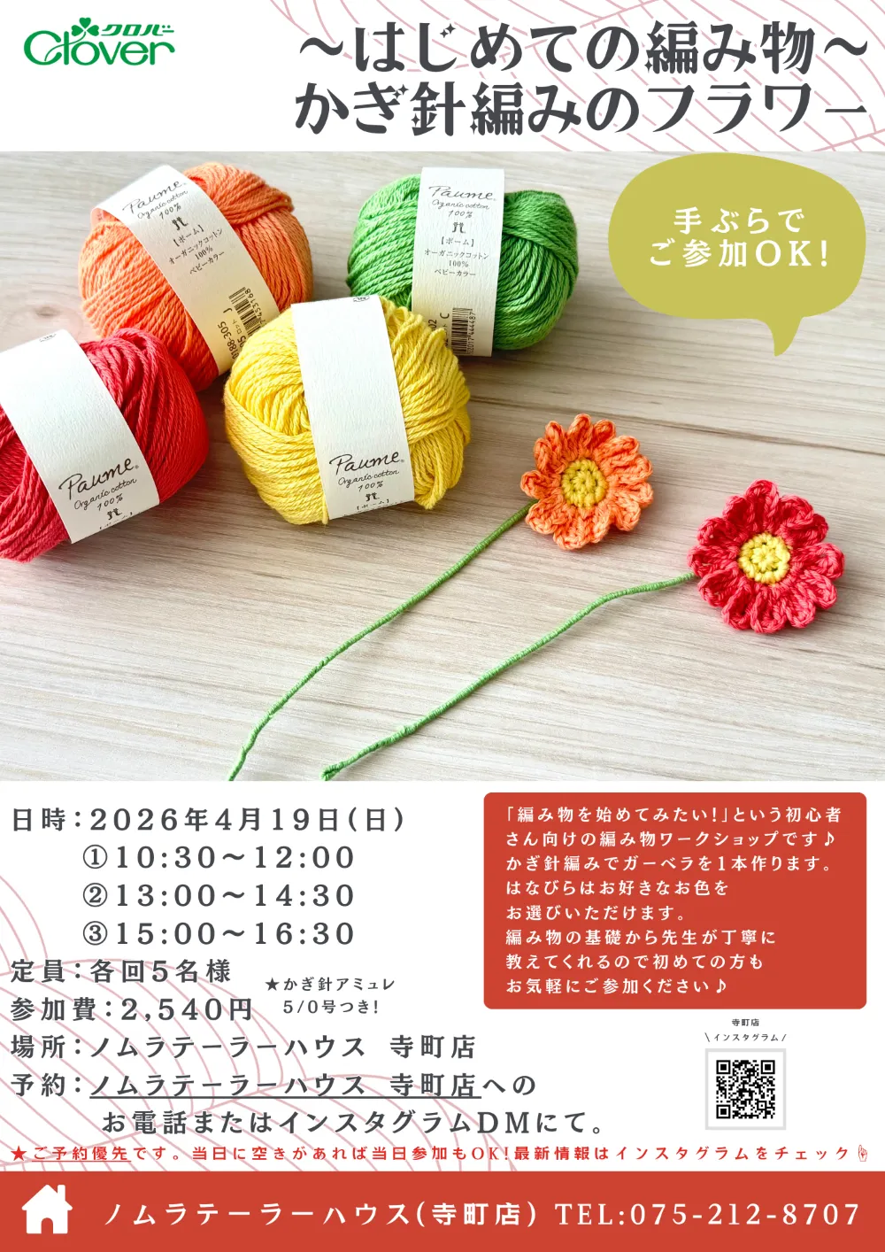 クロバーさんとの編み物コラボワークショップを開催します♪