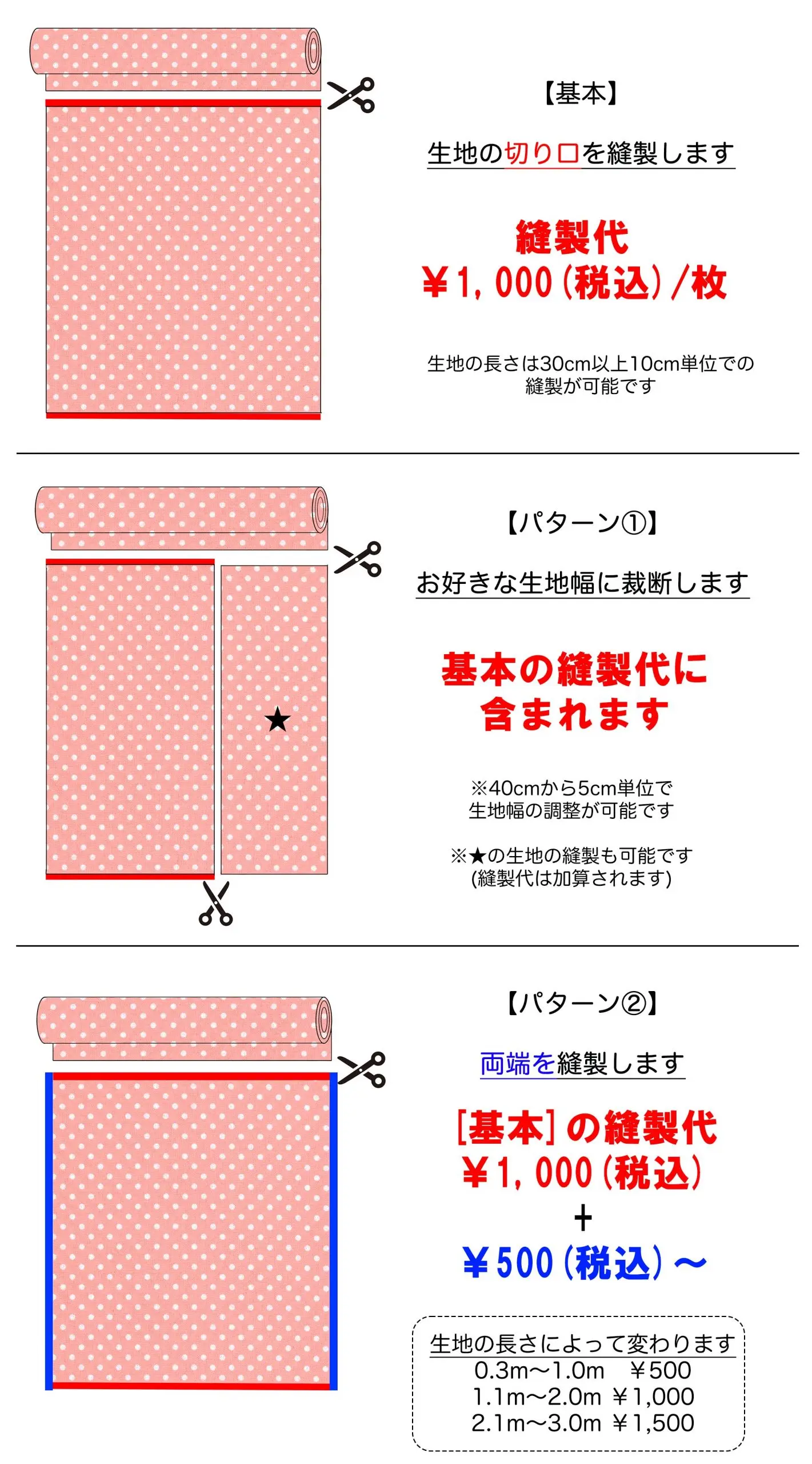 ※オプション①のみの加工、生地幅をカットするのみは出来かねます