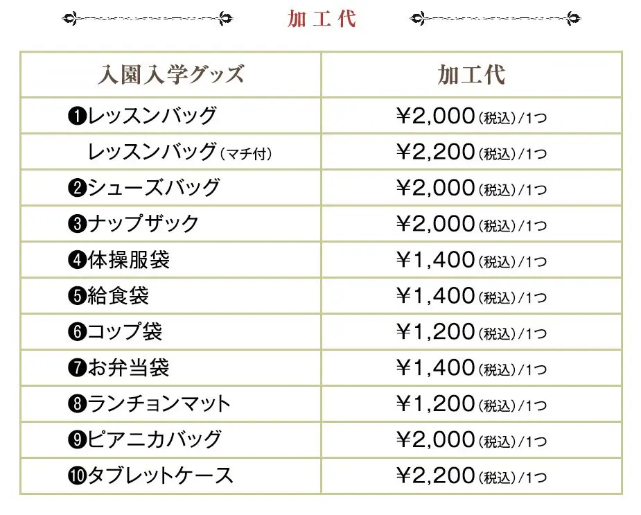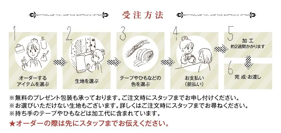 ※お持ち込みの生地での受注はトラブル防止のため出来かねます。