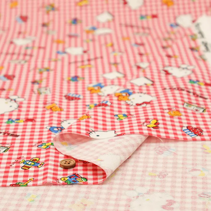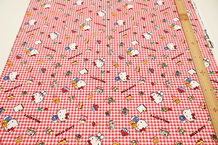 コットンオックスプリント生地 キティギンガム