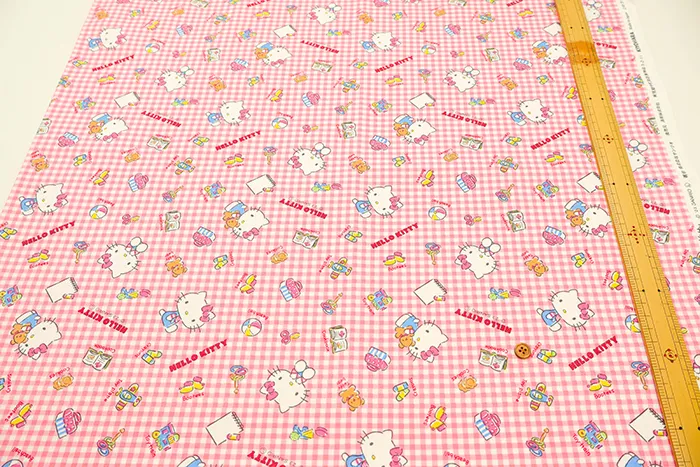 コットンオックスプリント生地 キティギンガム
