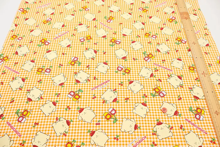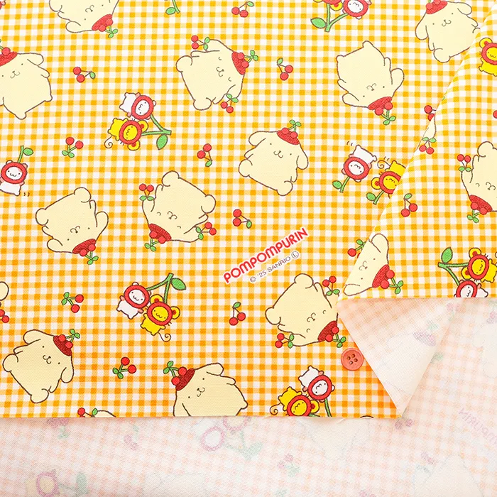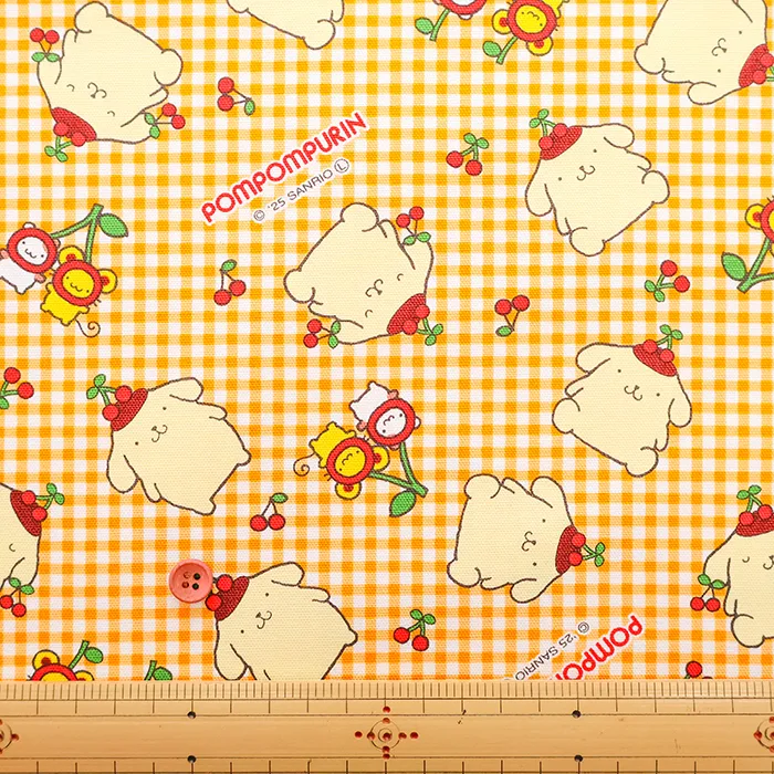 コットンオックスプリント生地 ポムポムプリン チェリー