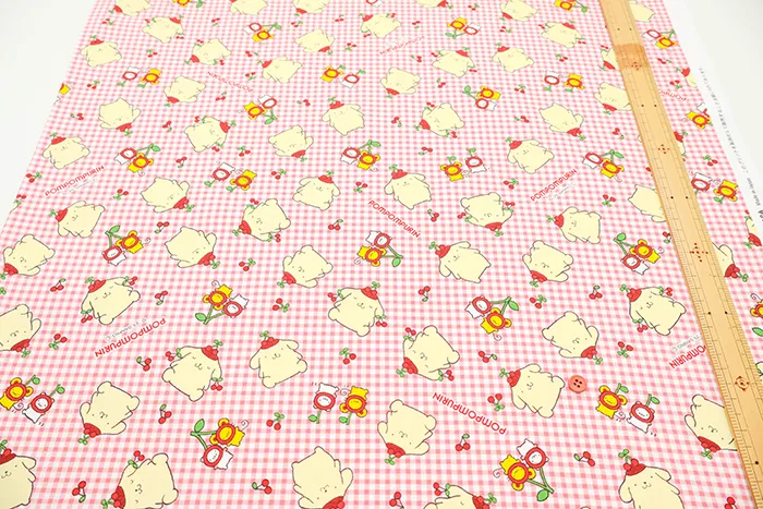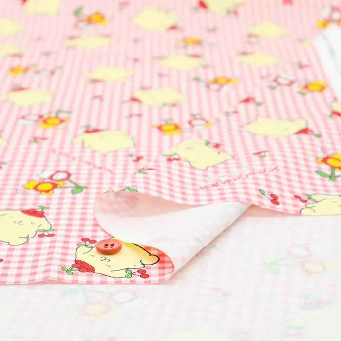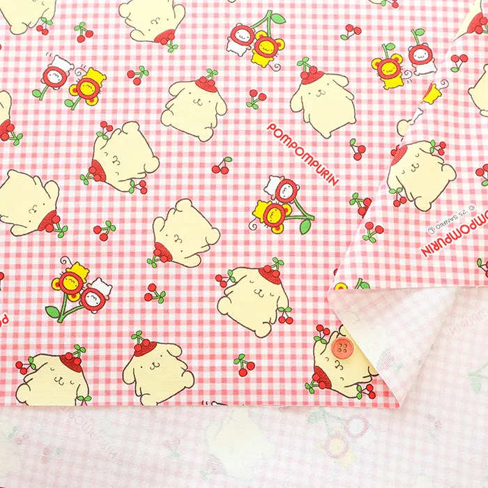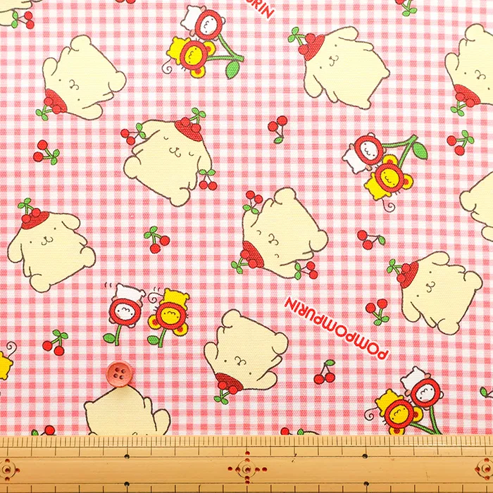 コットンオックスプリント生地 ポムポムプリン チェリー