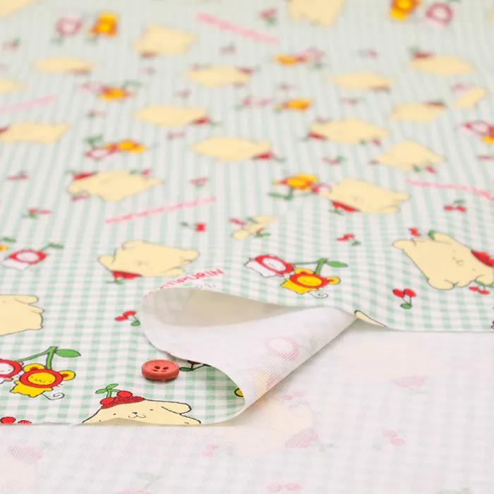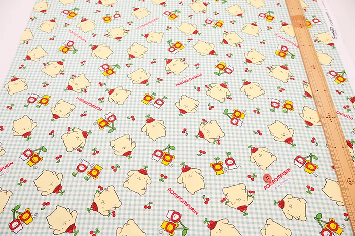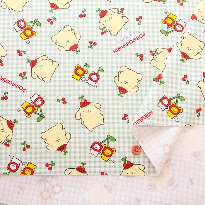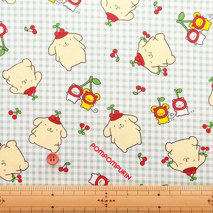 コットンオックスプリント生地 ポムポムプリン チェリー