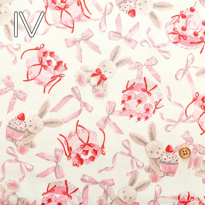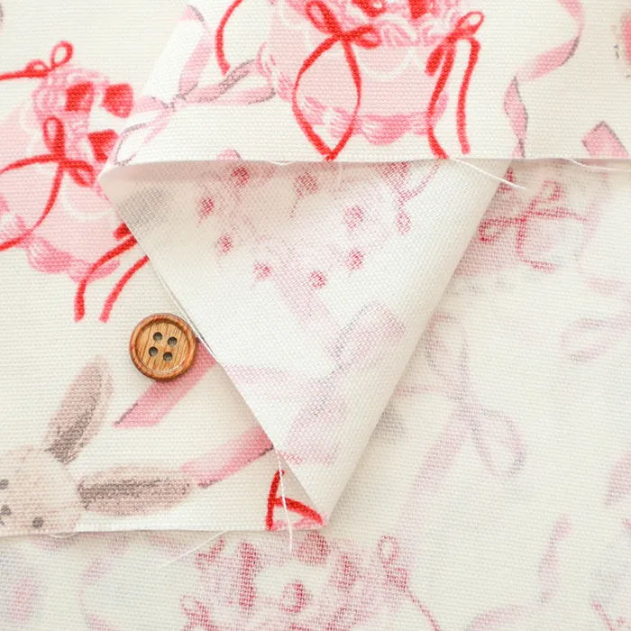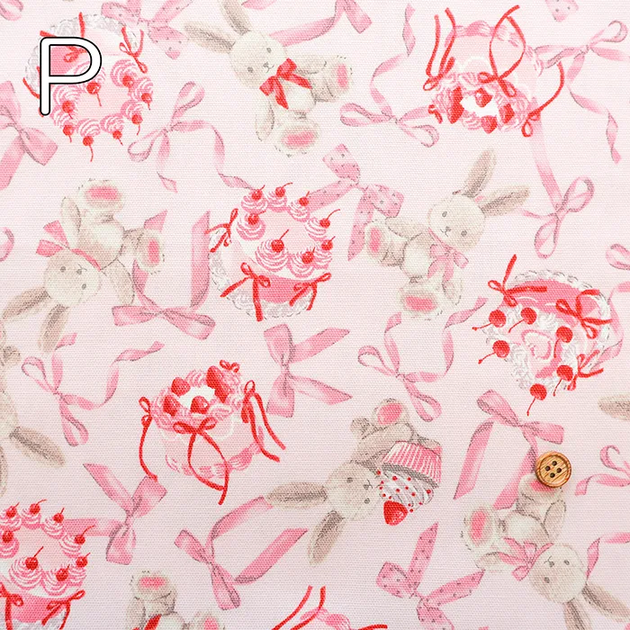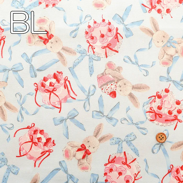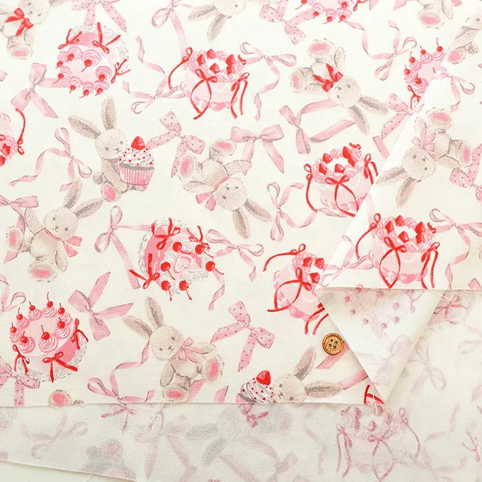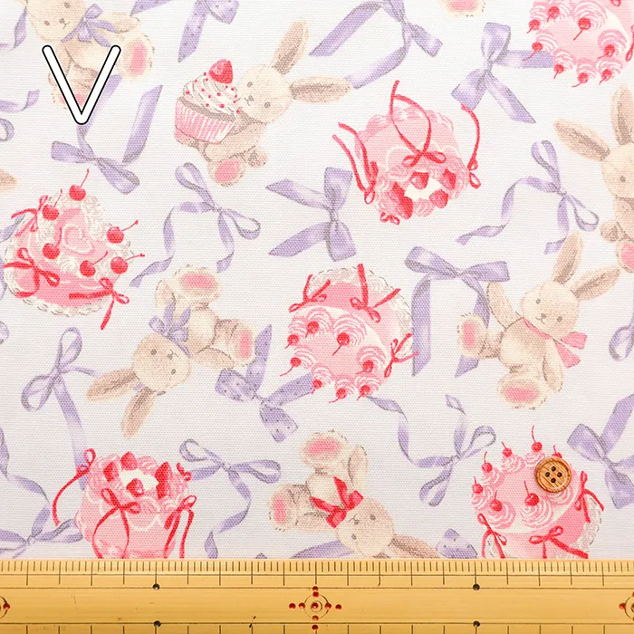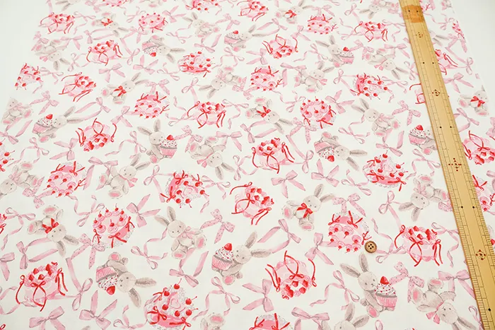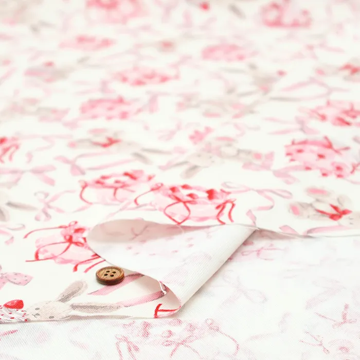 コットンオックスプリント生地 クラシカルモダン ラビットリボン