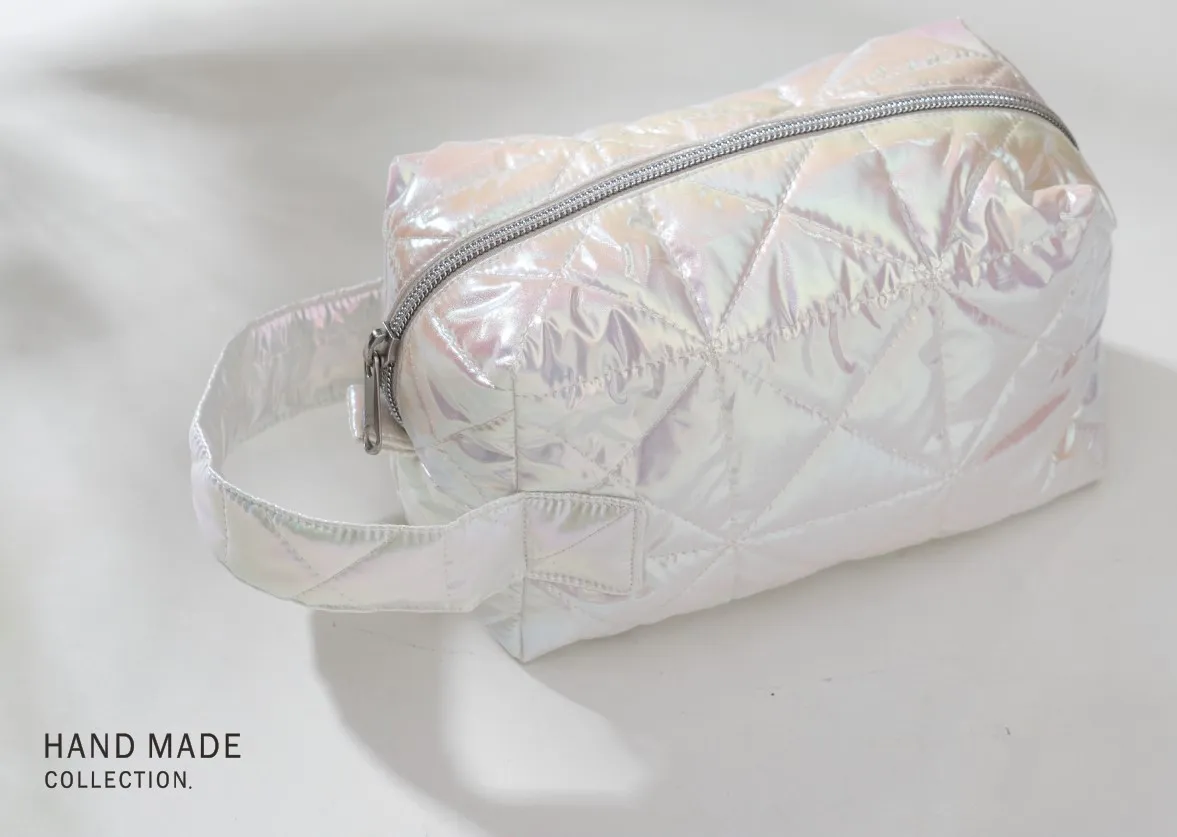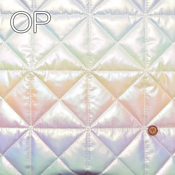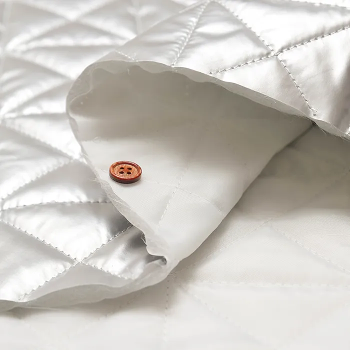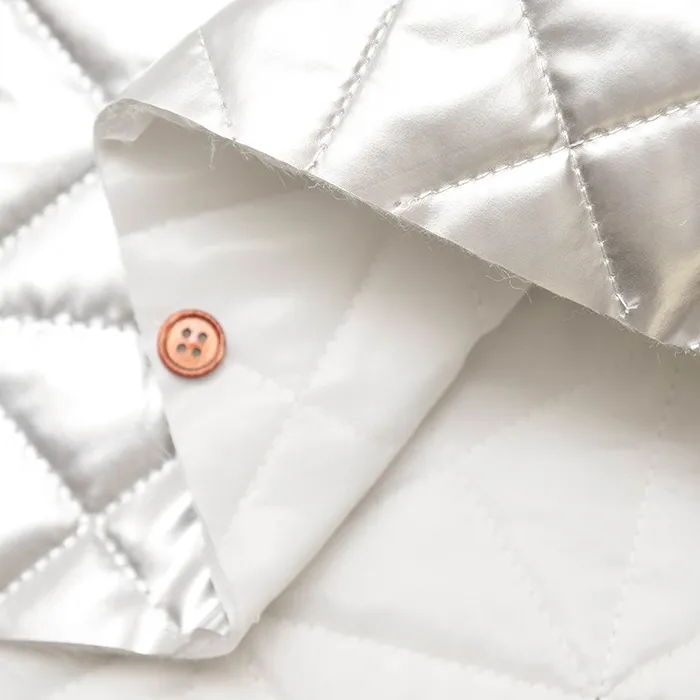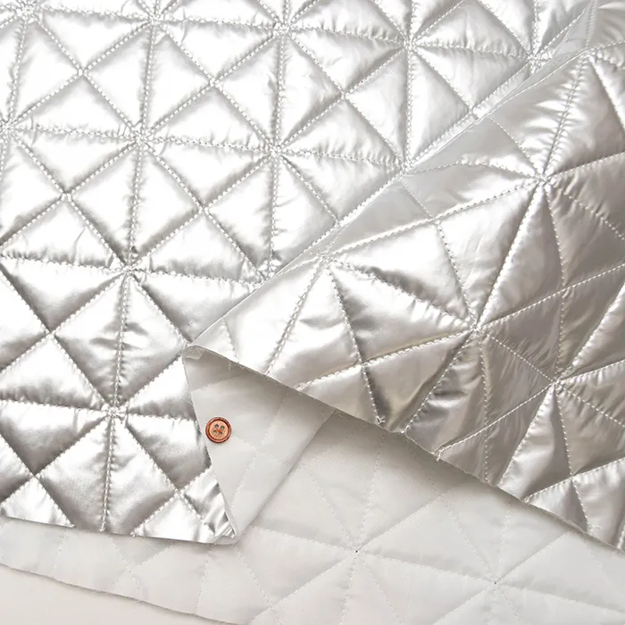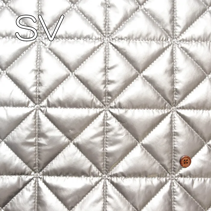 ステッチがスクエアでメタリックカラーのあるキルトです。