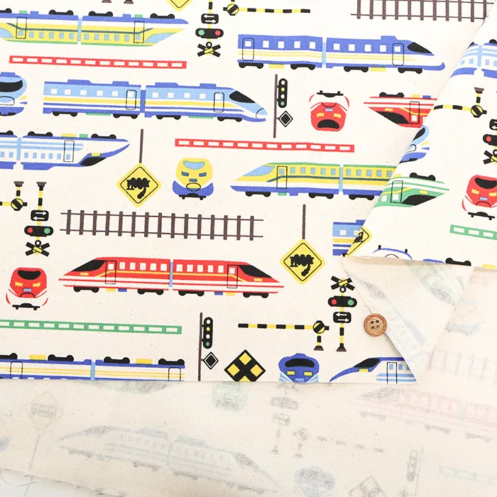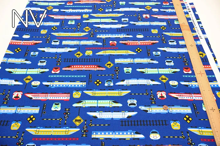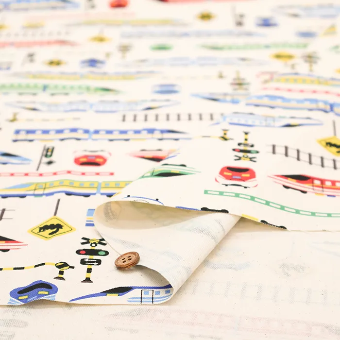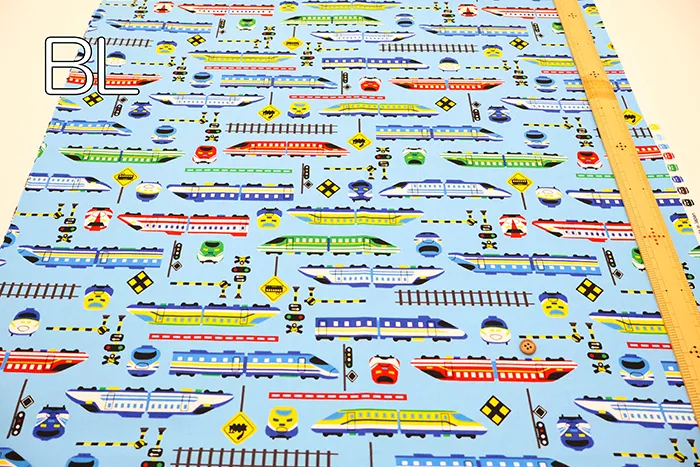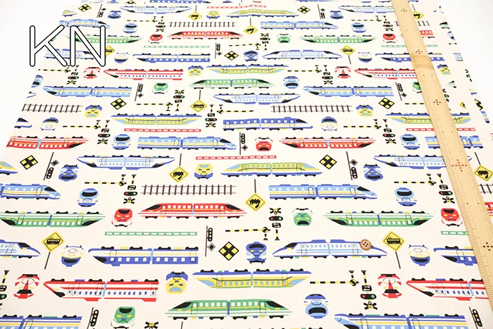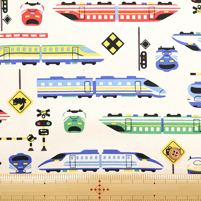 コットンオックスプリント生地 お気に入りシリーズ カラフルシンカンセン