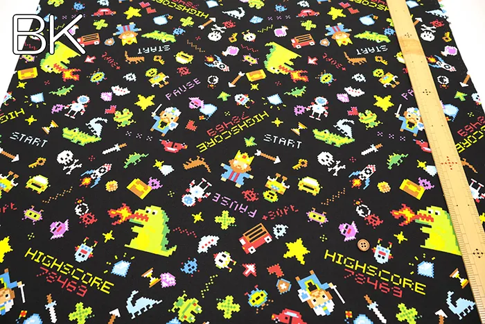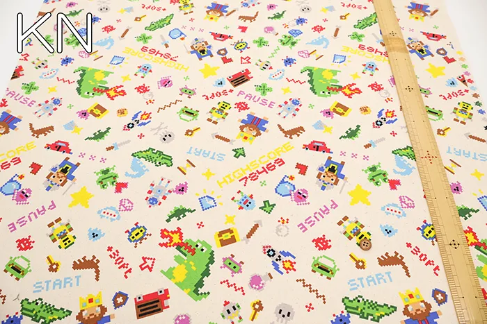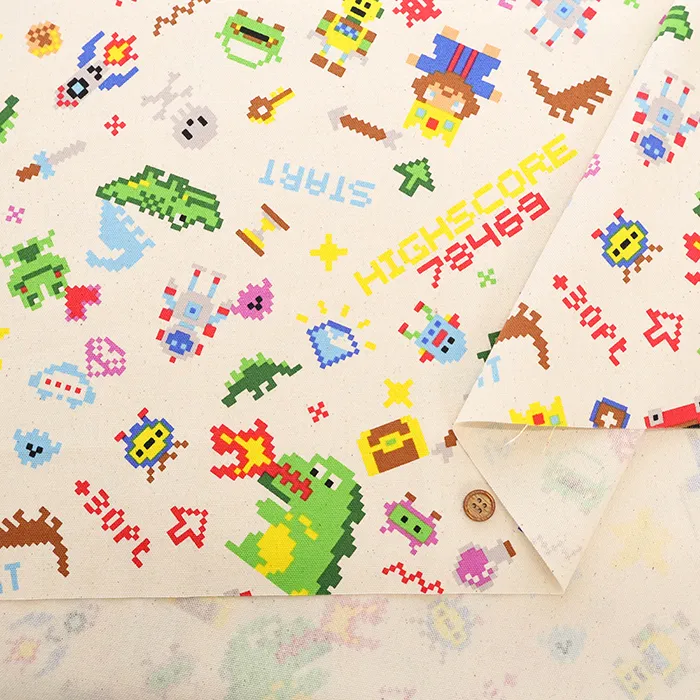 コットンオックスプリント生地 お気に入りシリーズ ピクセルアートゲーム
