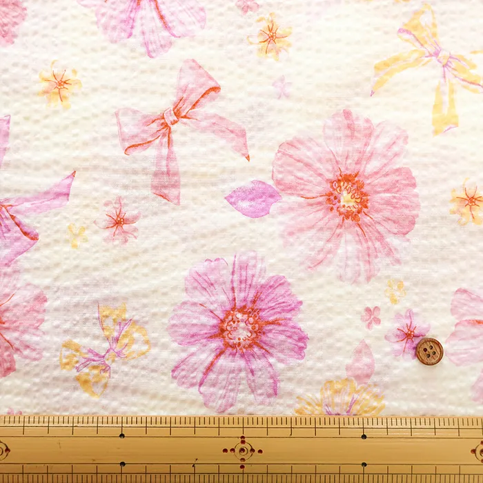 コットンリップルプリント生地 お気に入りシリーズ フラワーリボン