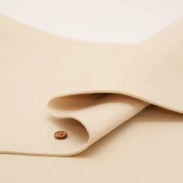 ポリエステルフェルト生地は吸湿・吸水性が低いため乾きが早く、縮みや毛羽立ちが少ないのが特徴です。