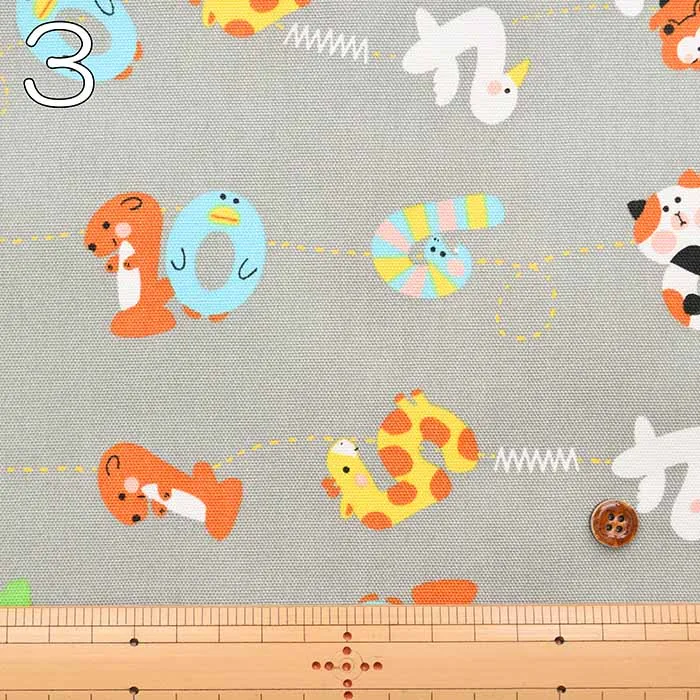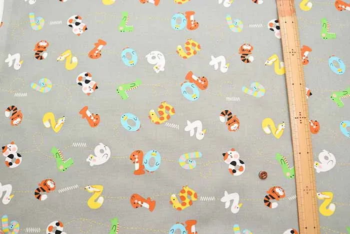 コットンオックスプリント生地 bambina アニマルナンバーズ