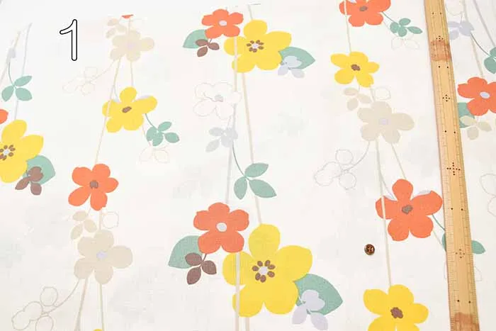 W巾コットンバッキンガムプリント生地 ラインフラワー