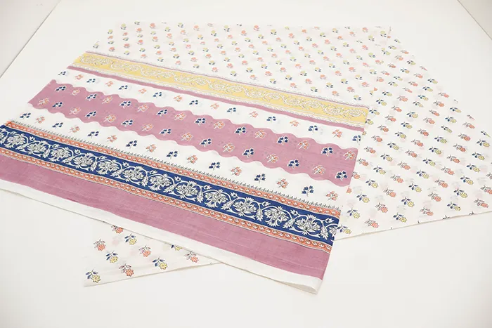 ※中国製、インド製などの海外製の生地は、多少の汚れ、プリントのムラや抜け、異なった色糸の混入がございます。キズや交換の対象として扱うことは出来ませんのでご確認ご了承の上お買い求めくださいませ。