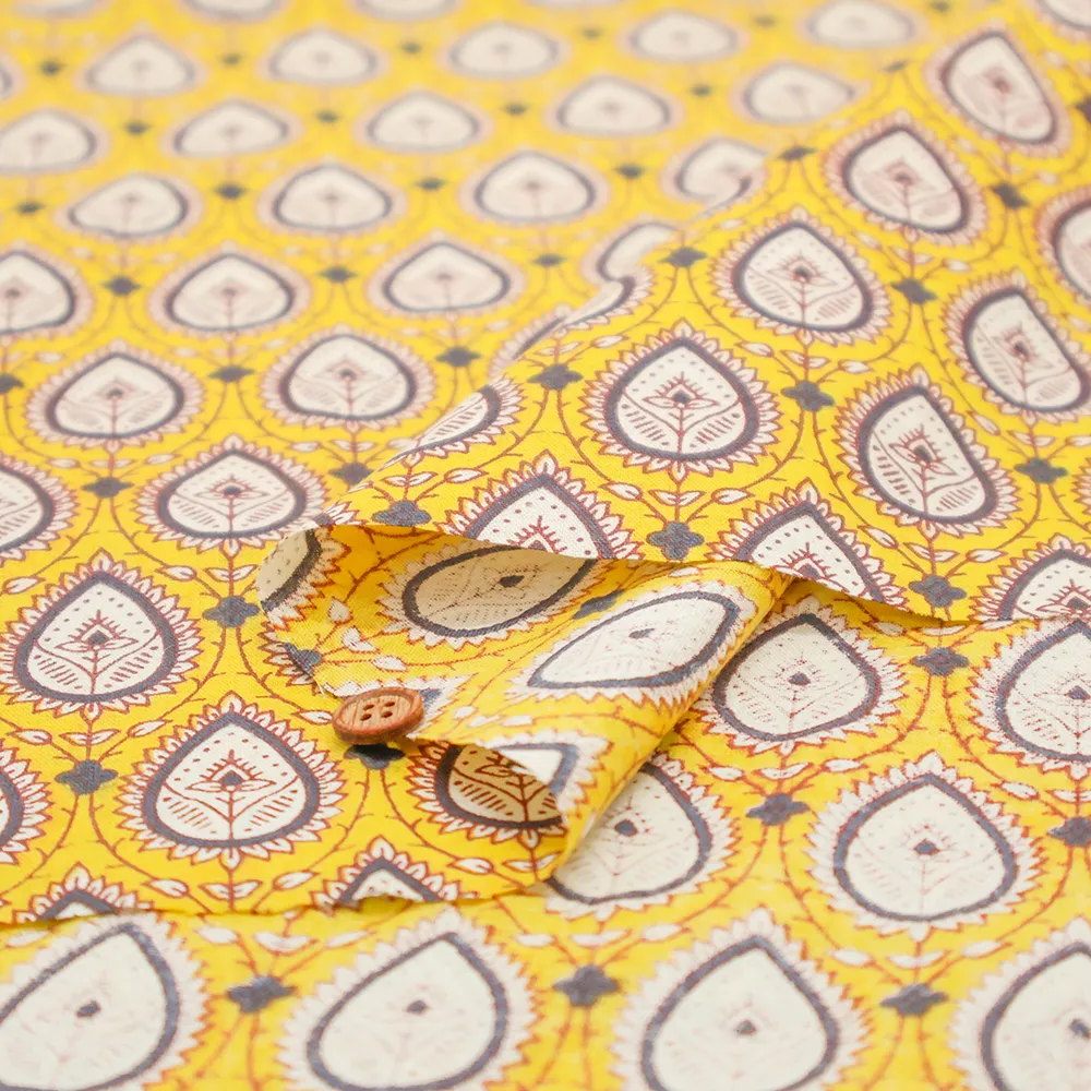 インド製 コットンシーチングプリント生地 エスニックフラワー しずく