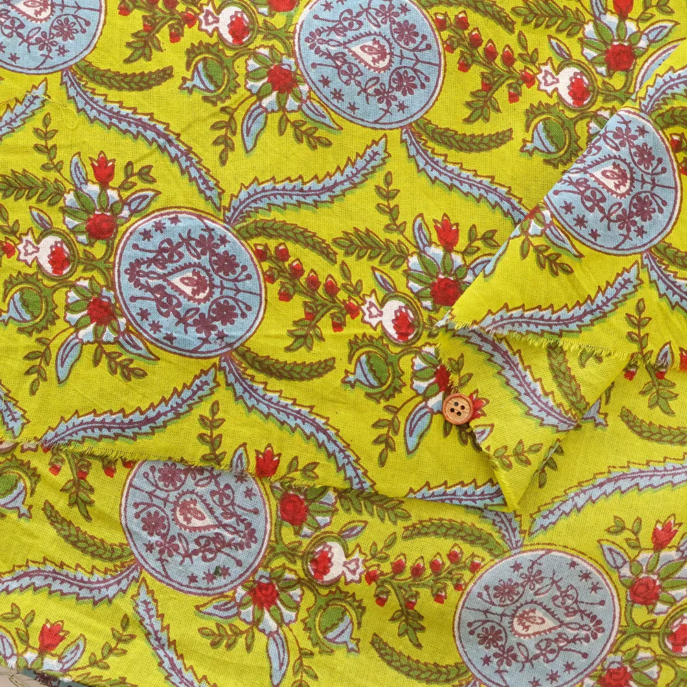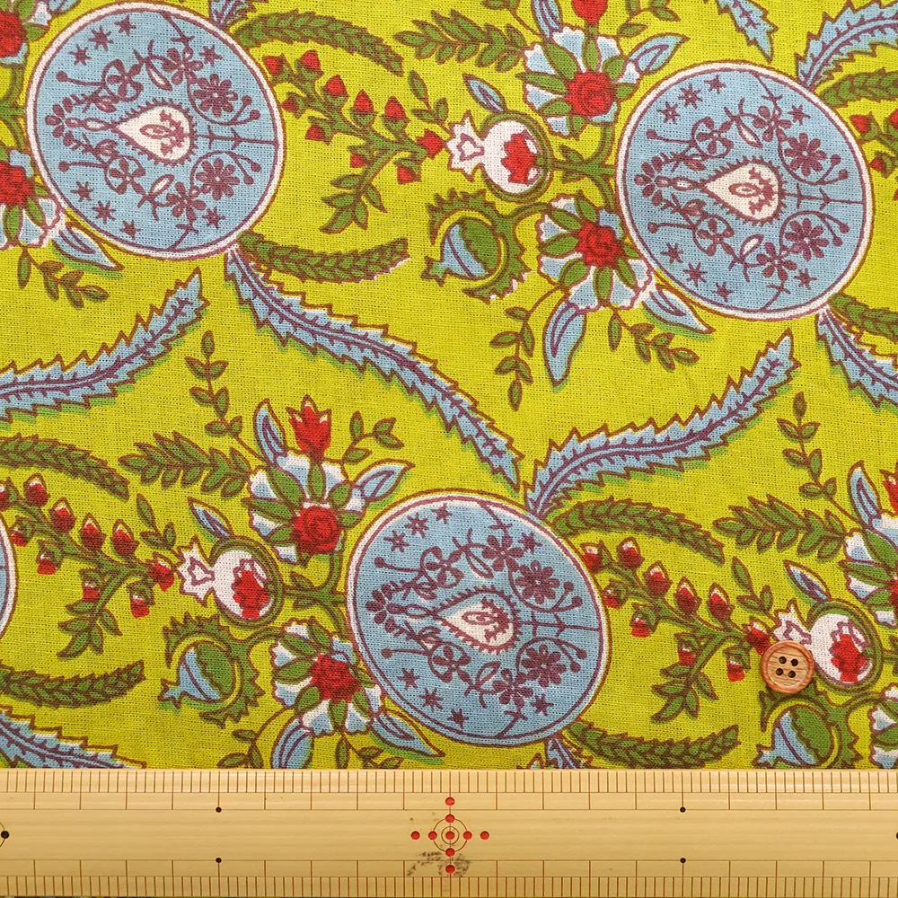 インド製 コットンシーチングプリント生地 エスニックフラワー モチーフ