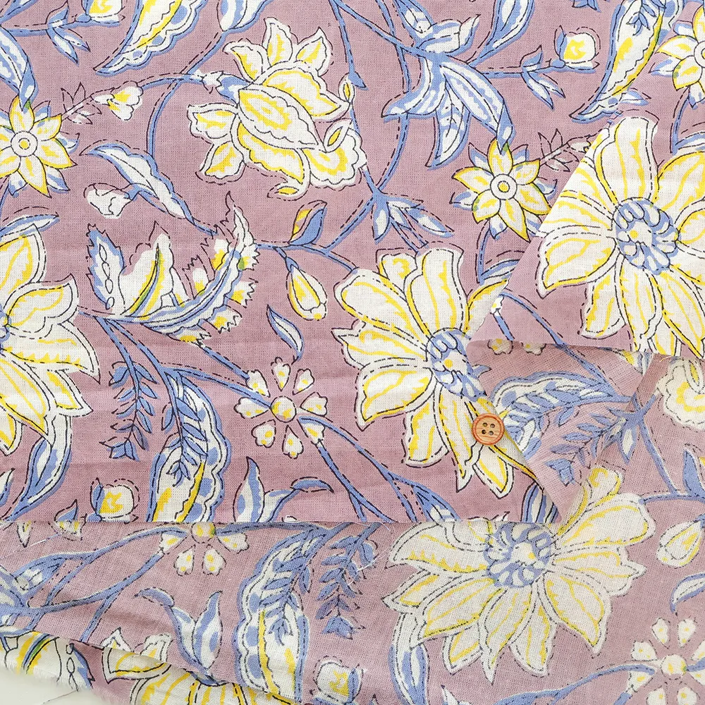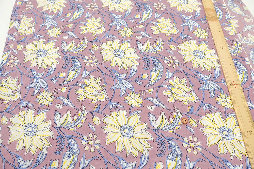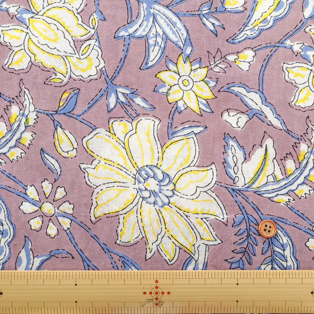 インド製 コットンシーチングプリント生地 エスニックフラワー リーフ