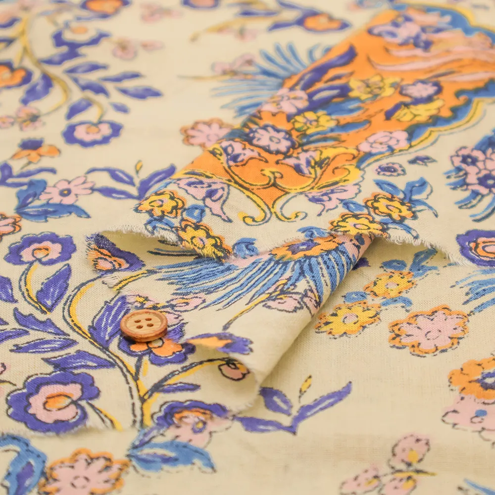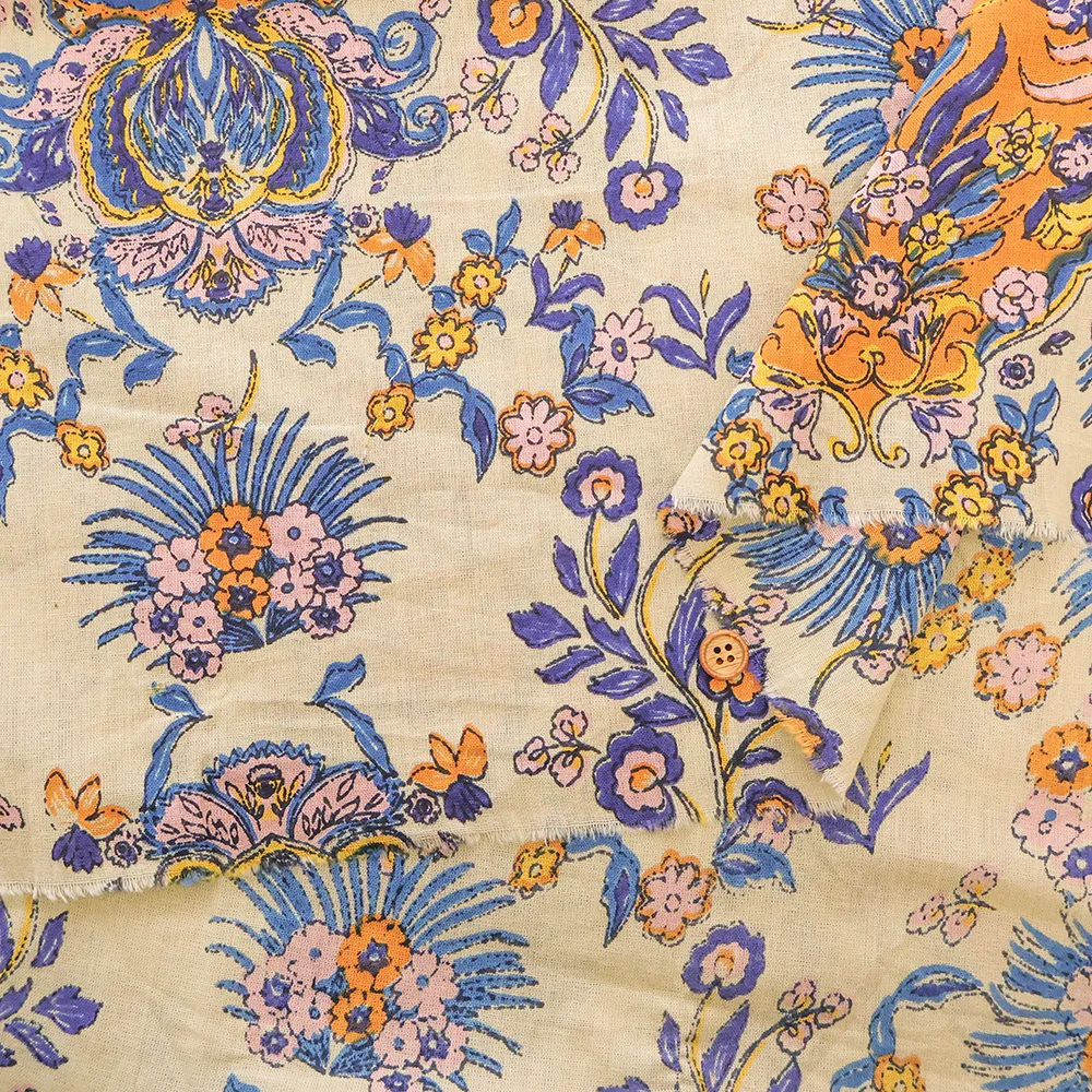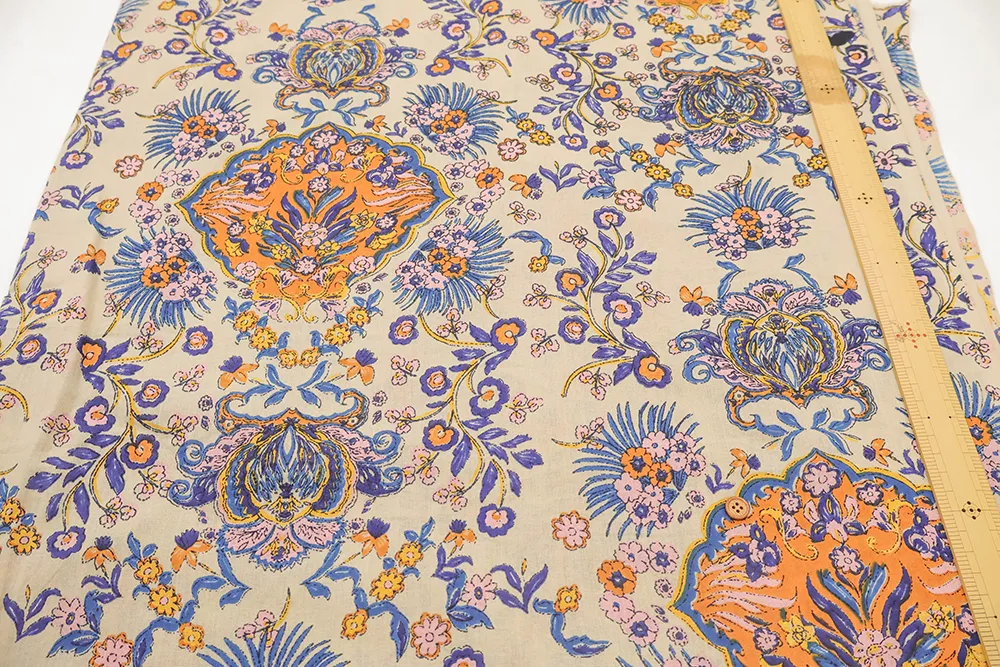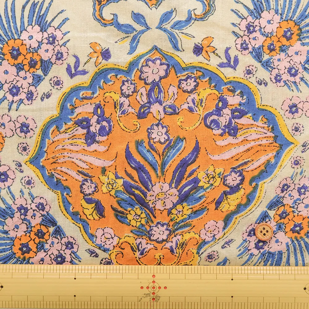 インド製 コットンシーチングプリント生地 エスニックフラワー モチーフ