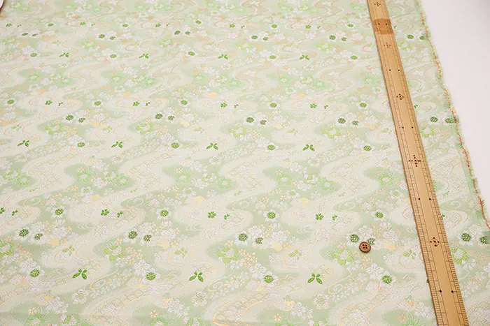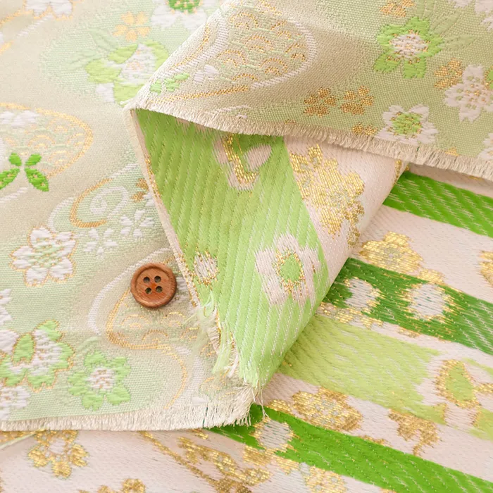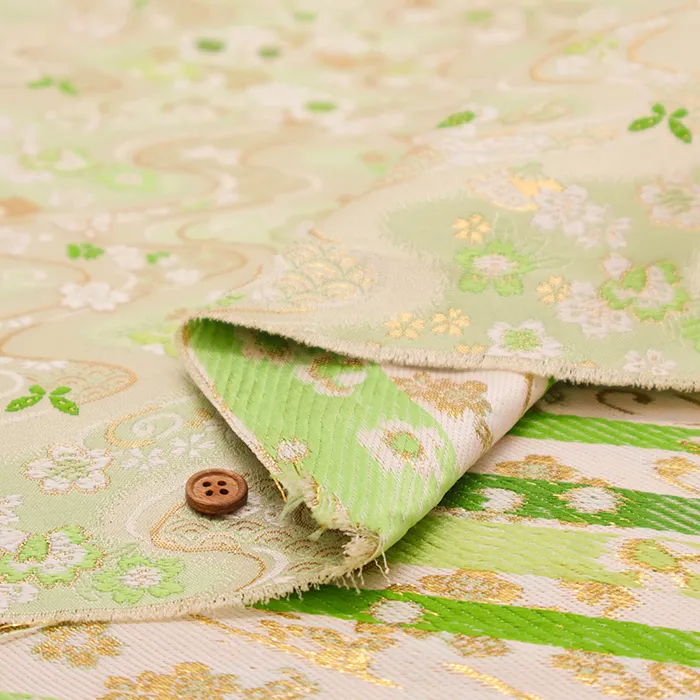 金糸や銀糸に色糸を交えて緯糸にし、紋様が浮き上がるように織った紋織物のひとつです。