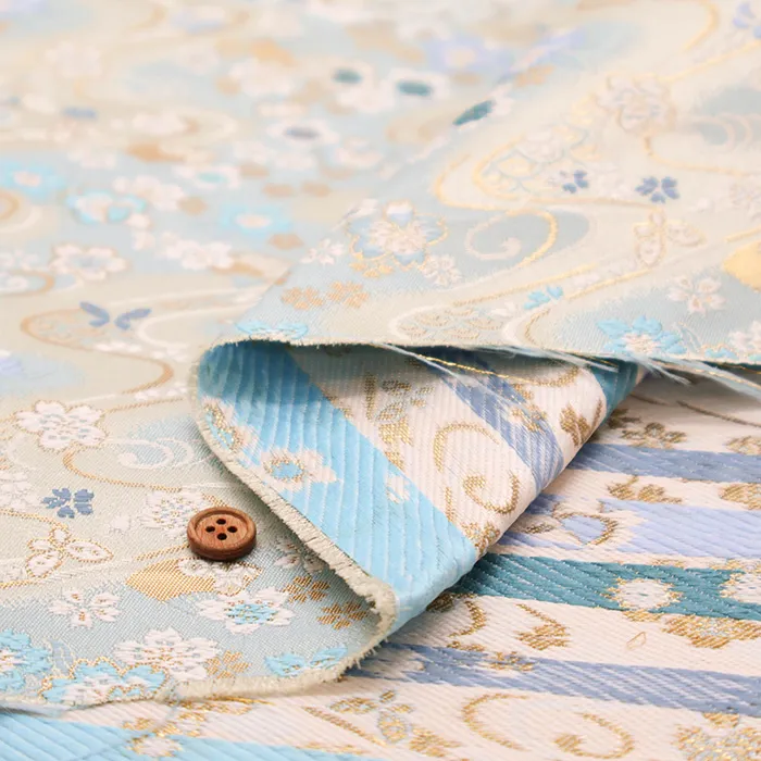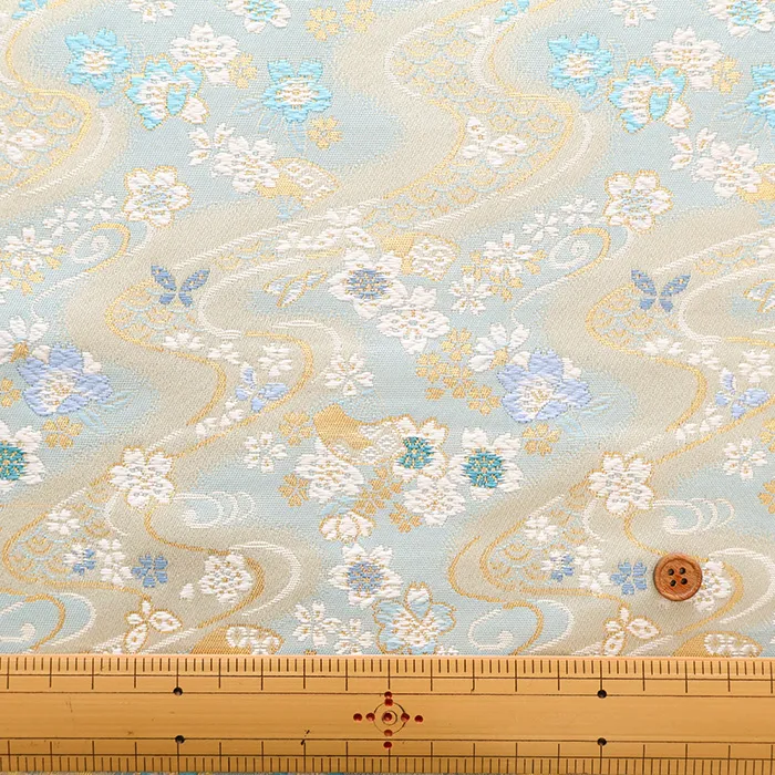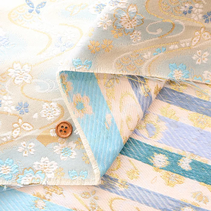 金糸や銀糸に色糸を交えて緯糸にし、紋様が浮き上がるように織った紋織物のひとつです。