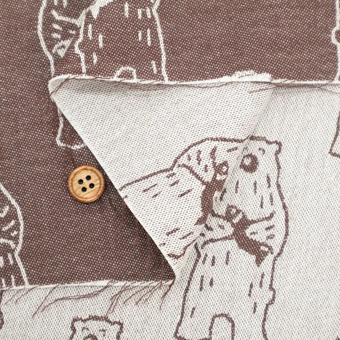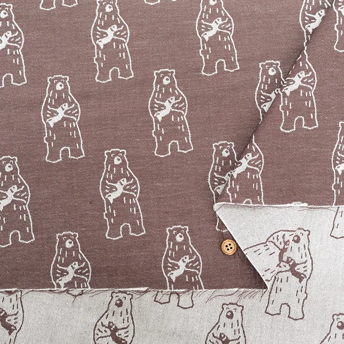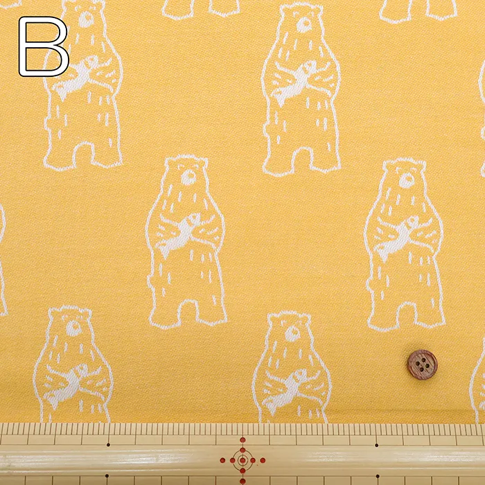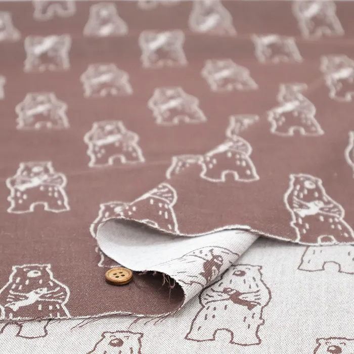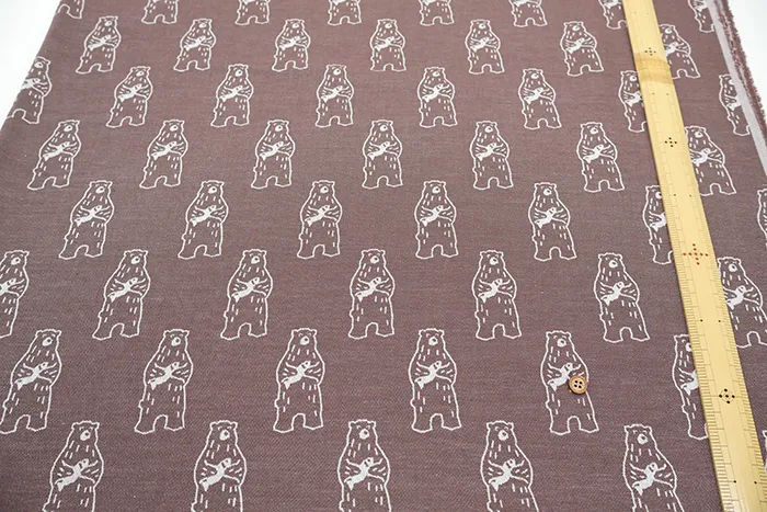播州織 コットンジャガード生地 レトロアニマル クマ