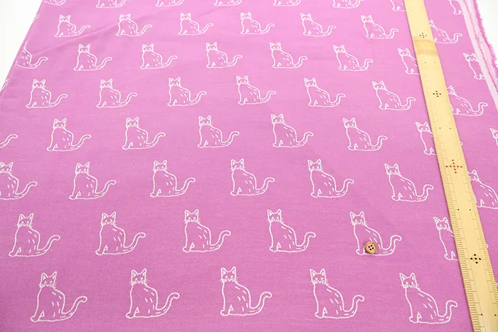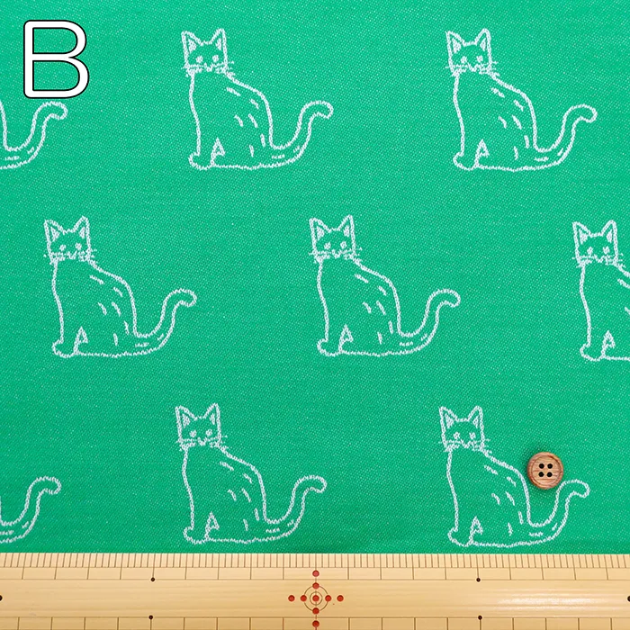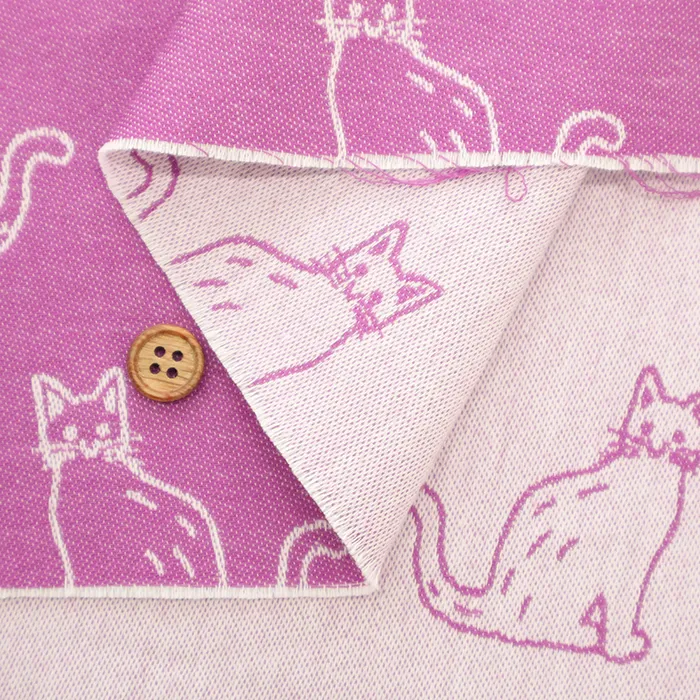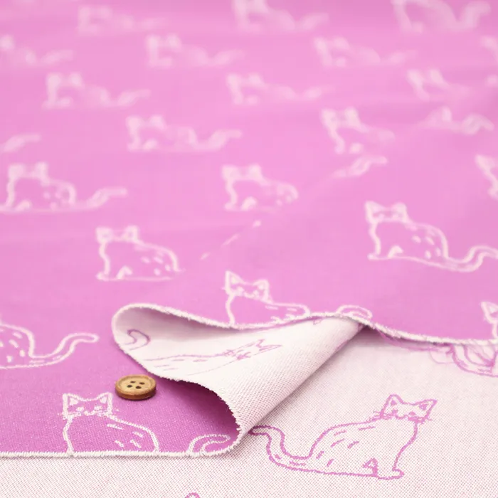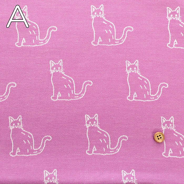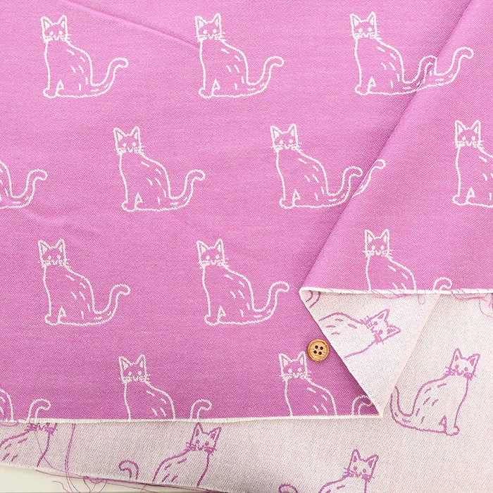 播州織 コットンジャガード生地 レトロアニマル ネコ