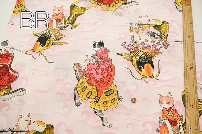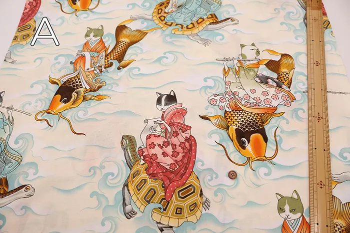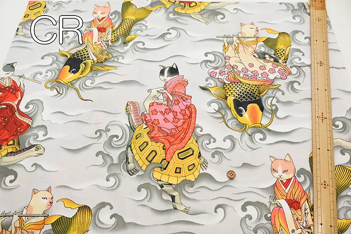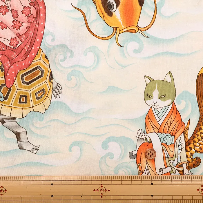 USAコットンシーチングプリント生地 ALEXANDER HENRY feline fisherman