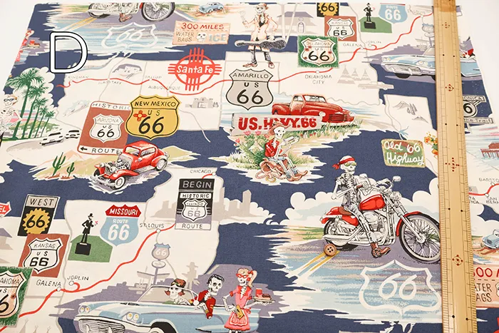 USAコットンシーチングプリント生地 ALEXANDER HENRY memories of route 66