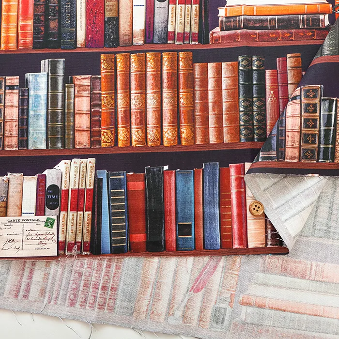 コットンシーチングインクジェットプリント生地 ming swim 本棚