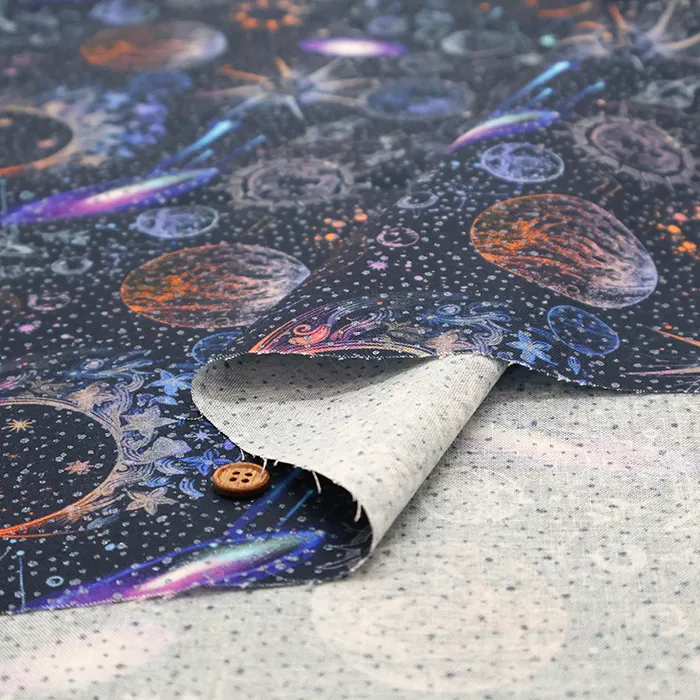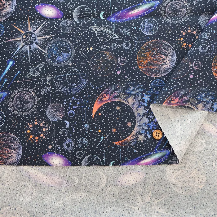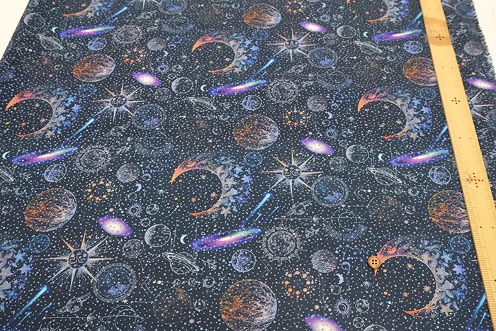 シーチングくらいの厚みで、扱いやすい平織りの生地です。扱いやすい生地ですので、インテリアや雑貨小物などの材料にいかがでしょうか。