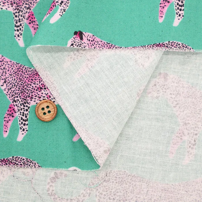 シーチングくらいの厚みで、扱いやすい平織りの生地です。扱いやすい生地ですので、インテリアや雑貨小物などの材料にいかがでしょうか。