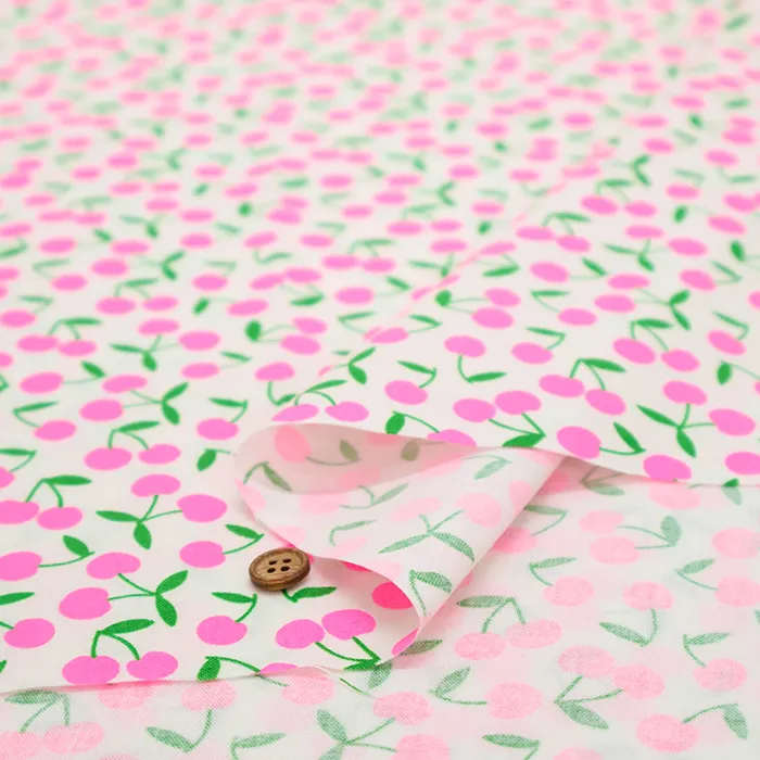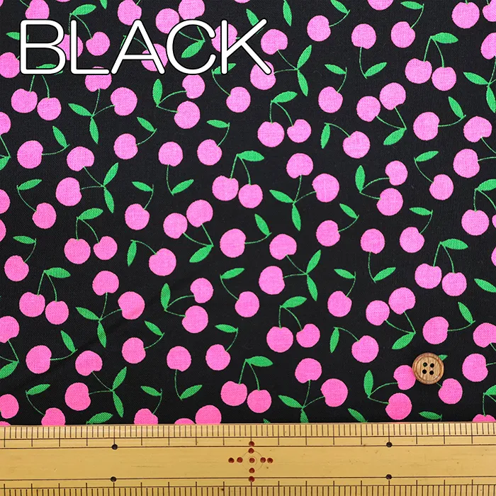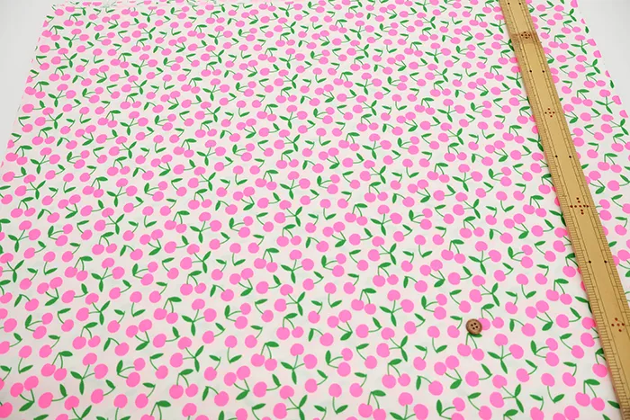 コットンシーチングネオンプリント生地 チェリー