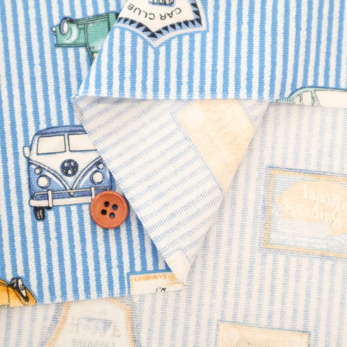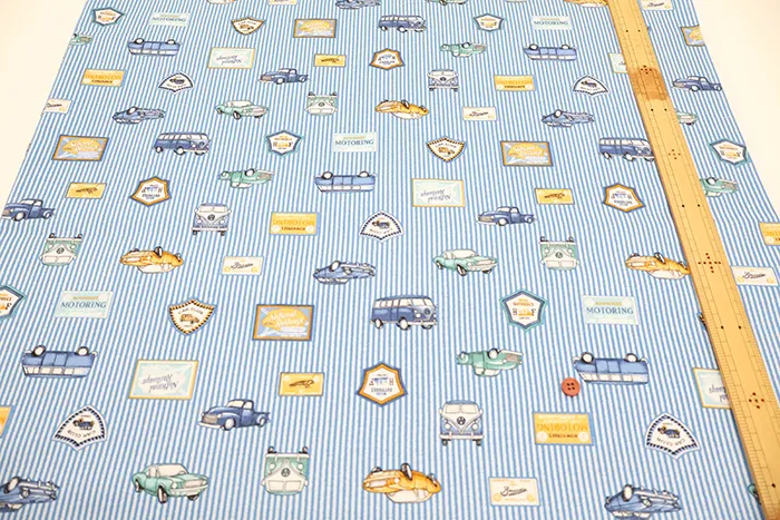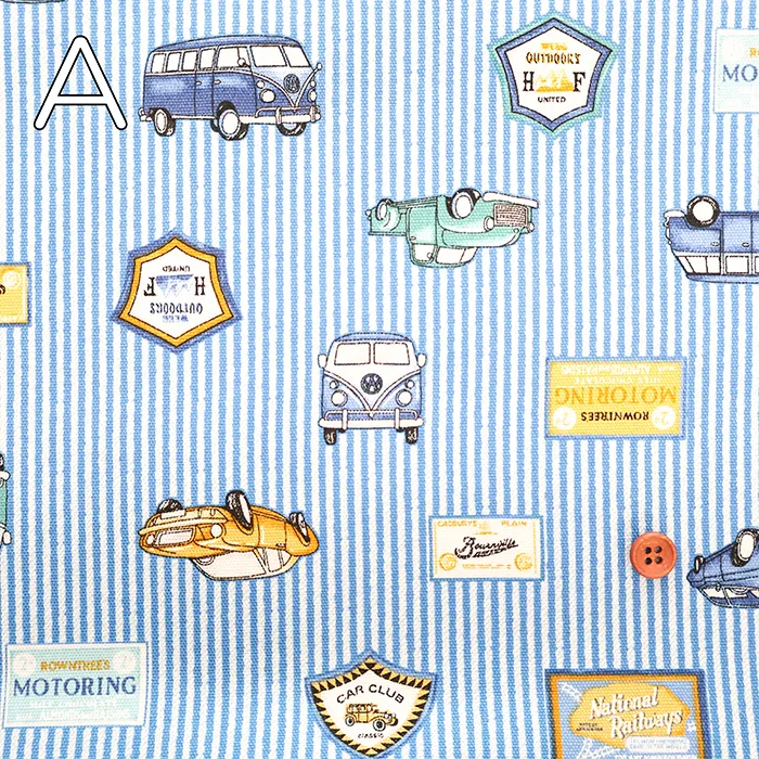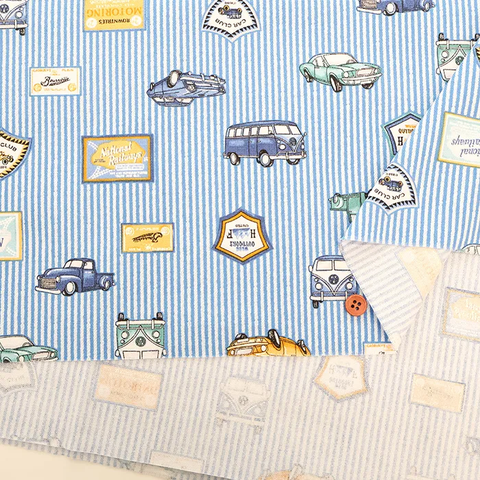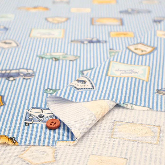 コットンオックスプリント生地 ヴィンテージカー×ストライプ