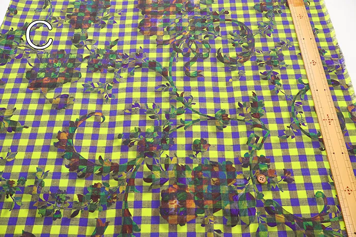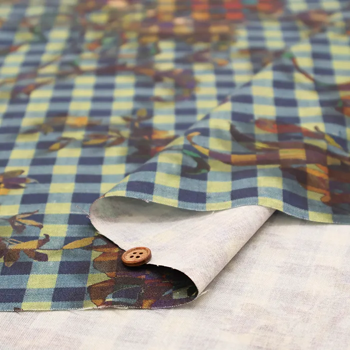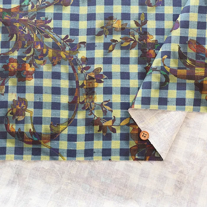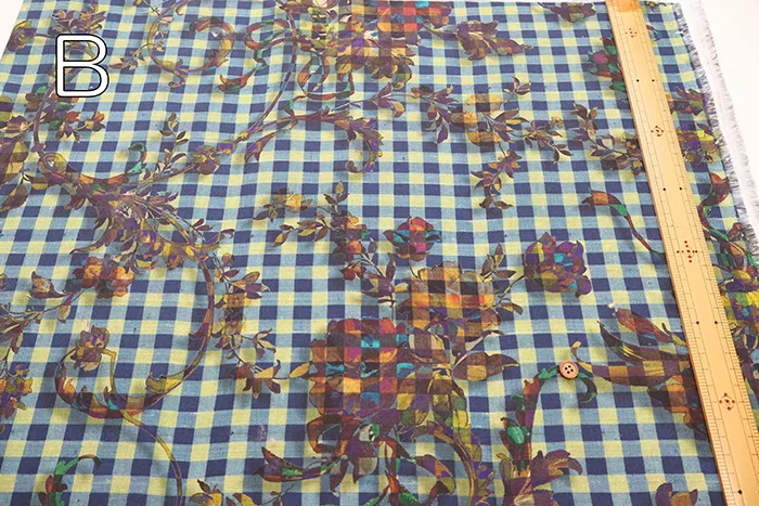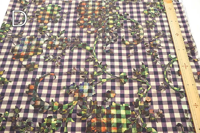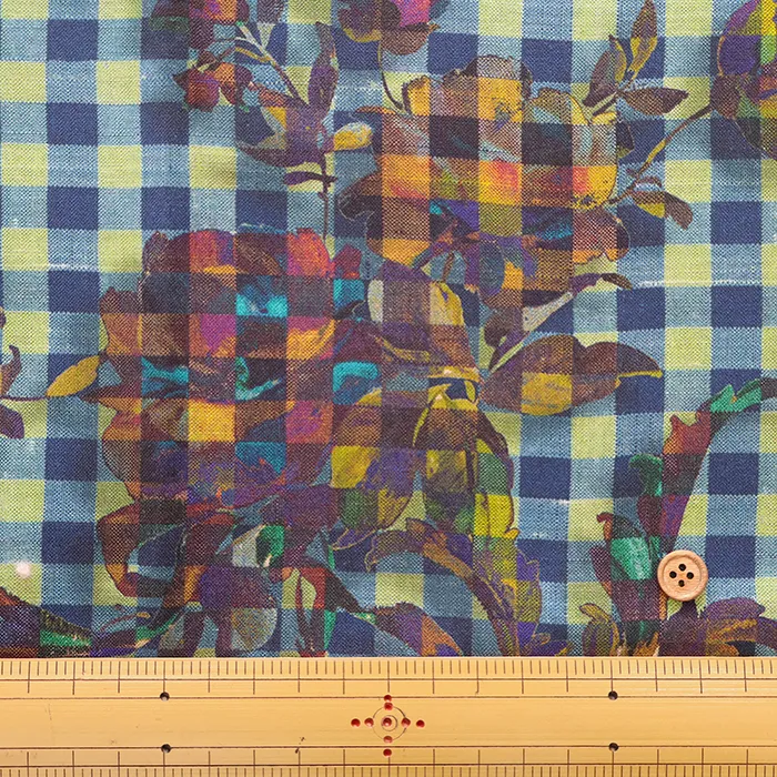 コットンシーチングプリント生地 nora. ギンガムフラワー
