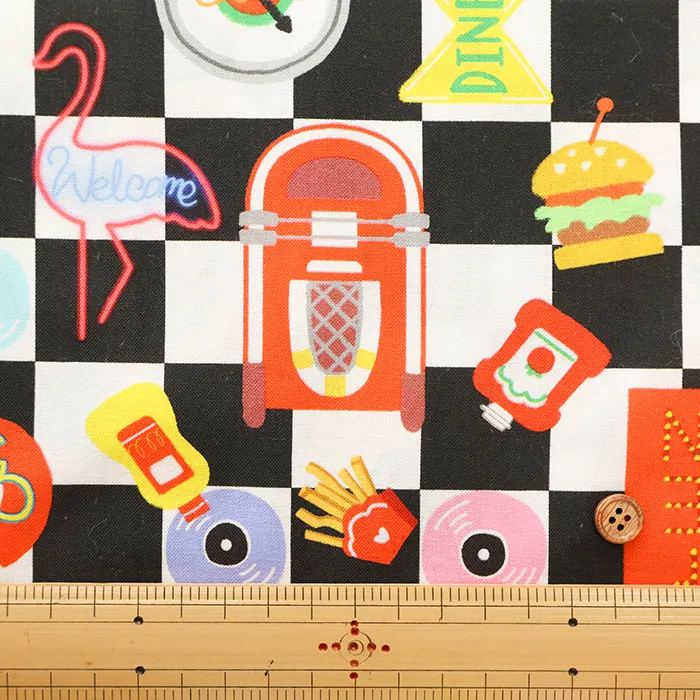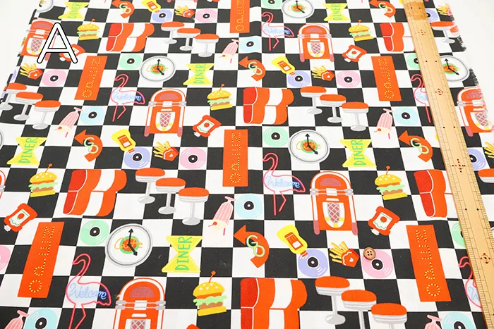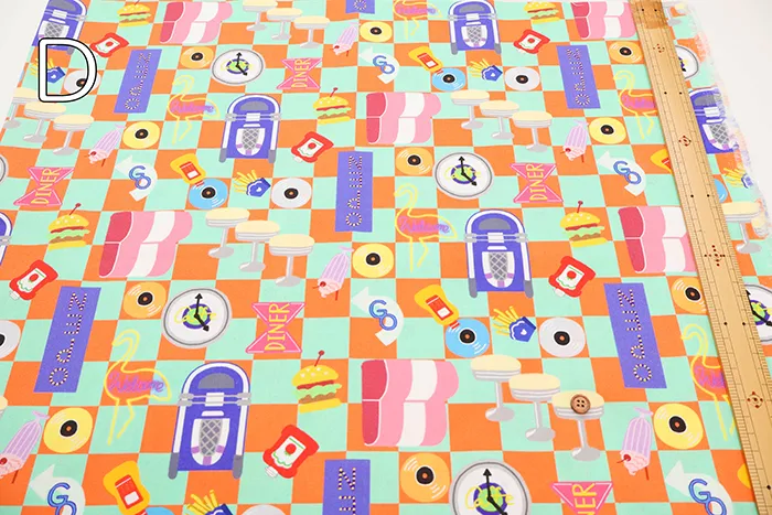 コットンシーチングプリント生地 nora. ダイナー
