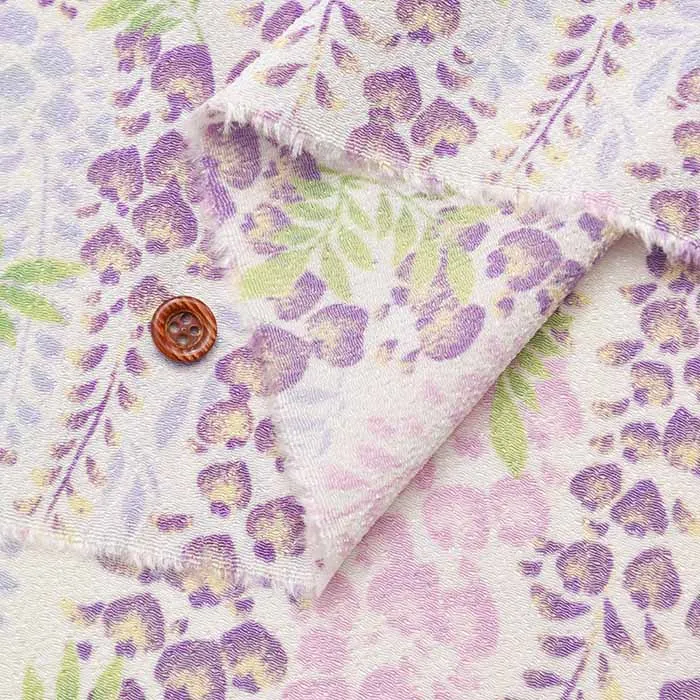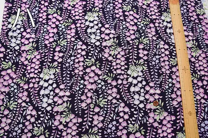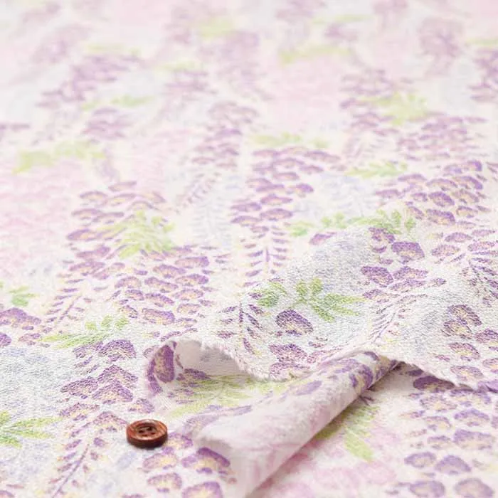ポリエステル二越ちりめんプリント生地 藤の花