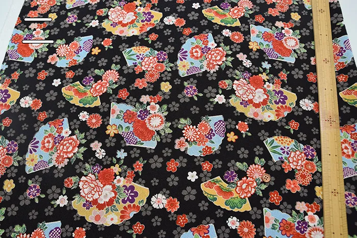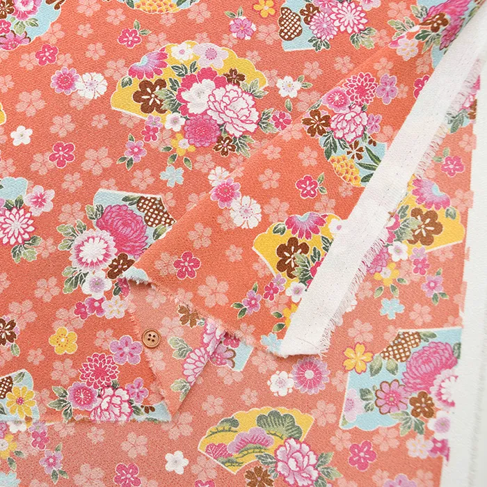 ポリエステル二越ちりめんプリント生地 扇子