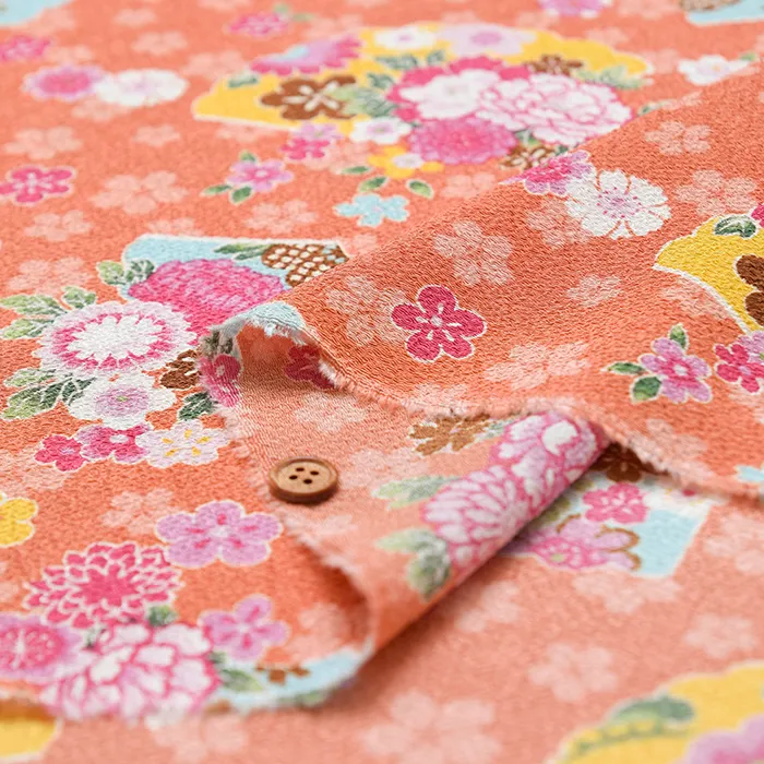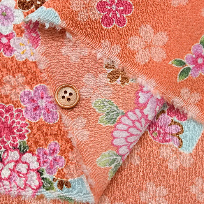 生地表面にシボが現れるクレープ織りの一種の縮緬(ちりめん)生地。