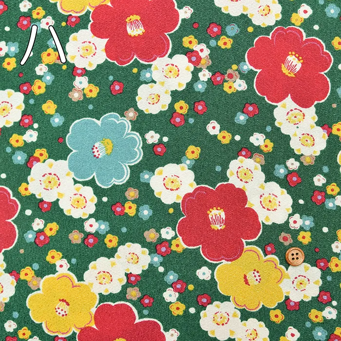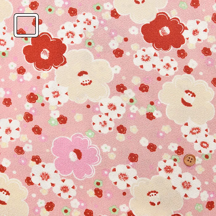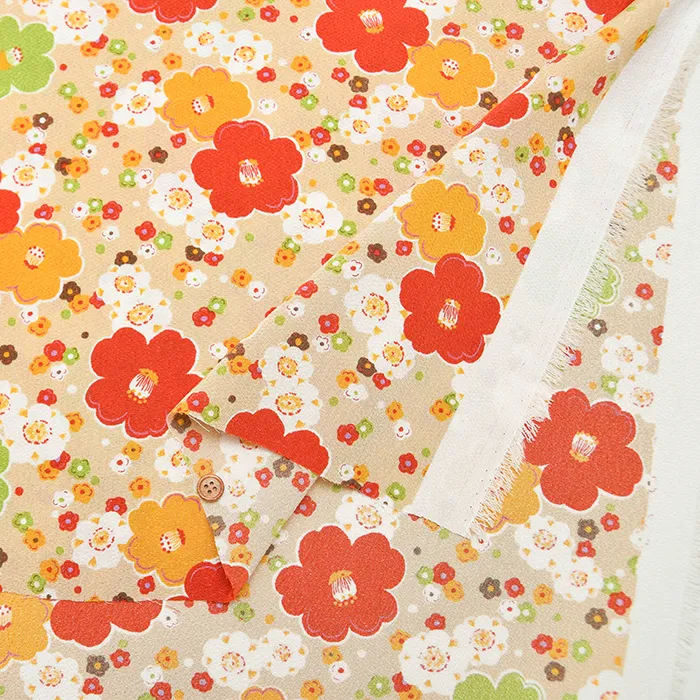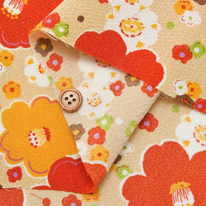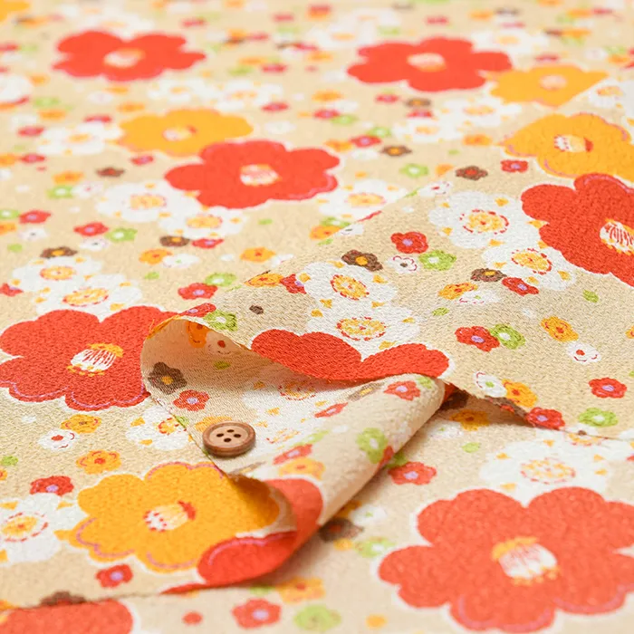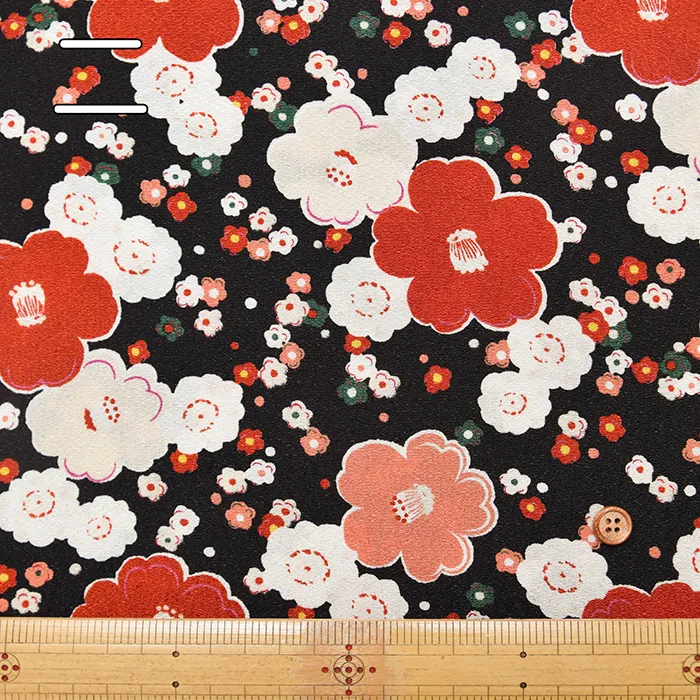 ポリエステル二越ちりめんプリント生地 椿