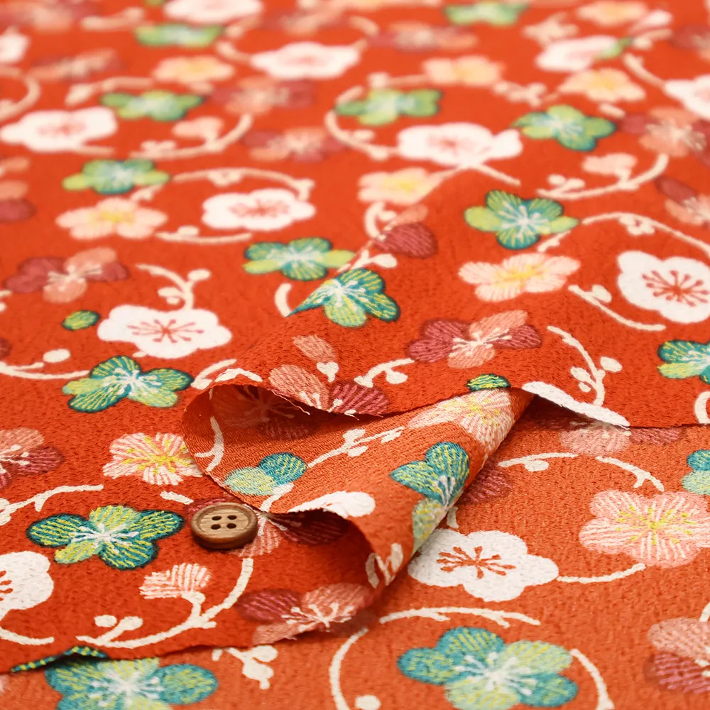 呉服などの着物で古くから利用されている伝統的な生地ですが、こちらは水やシワにも強いポリエステル素材のチリメンです。