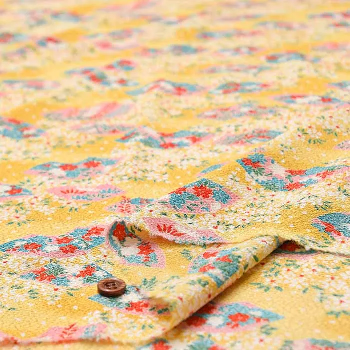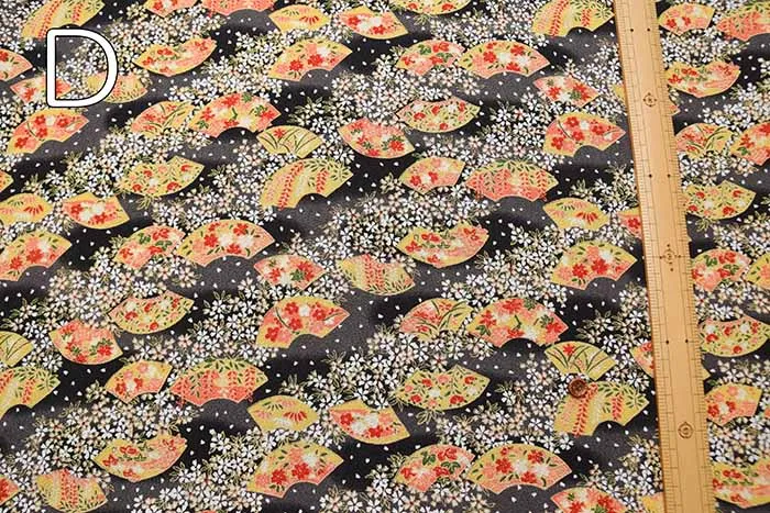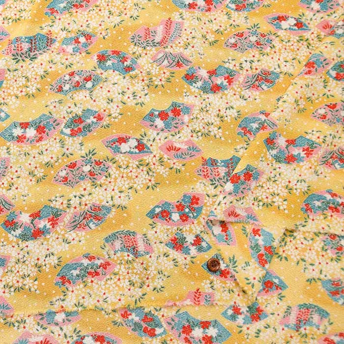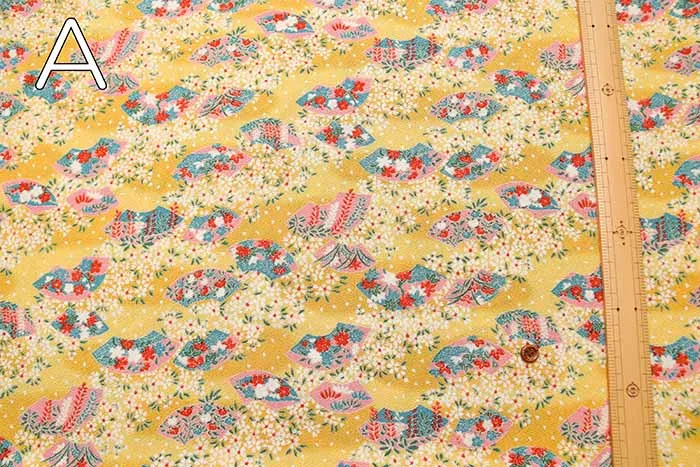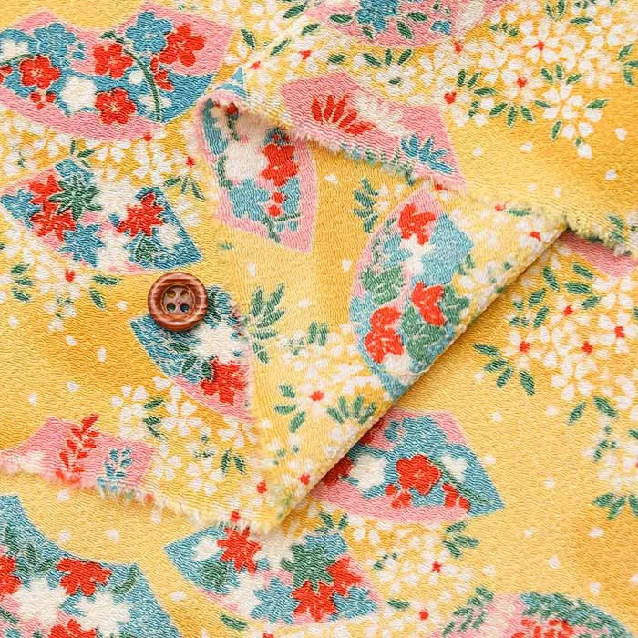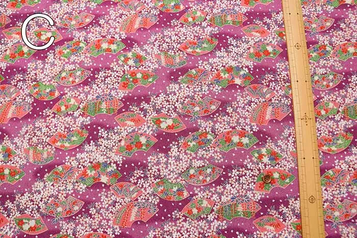 ポリエステル二越ちりめんプリント生地 桜扇子