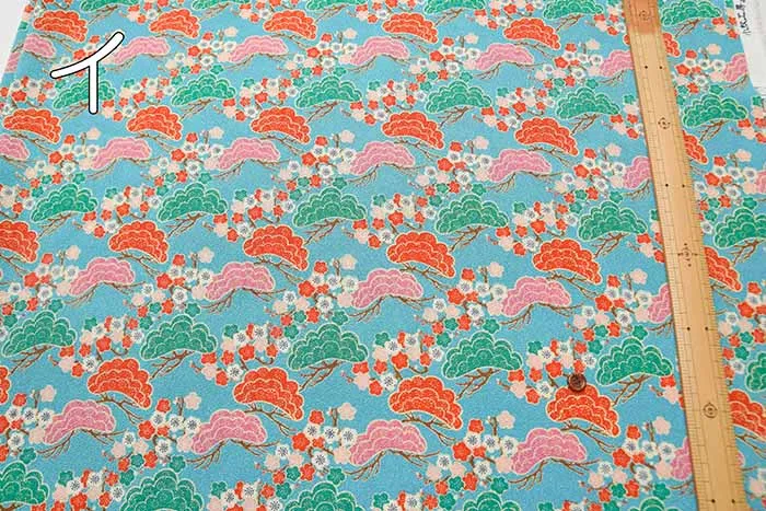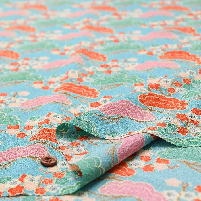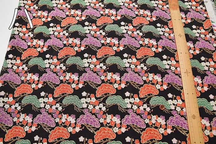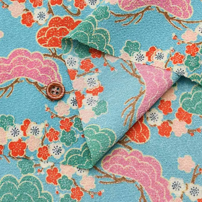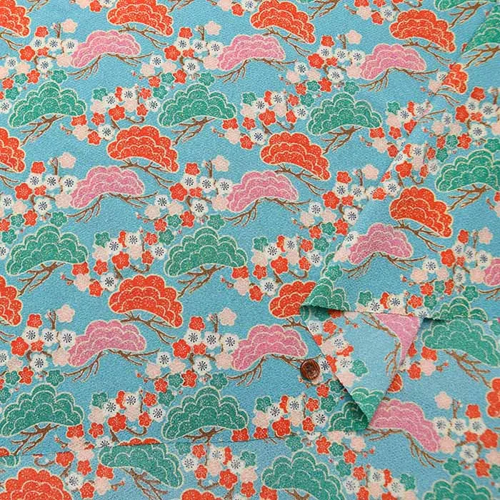 ポリエステル二越ちりめんプリント生地 松に梅