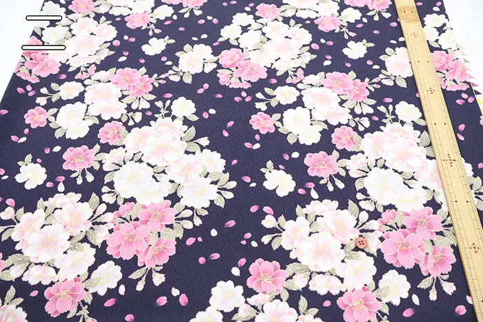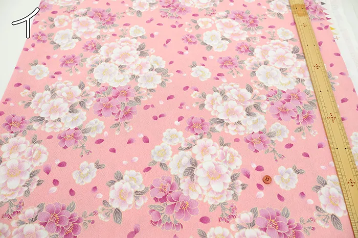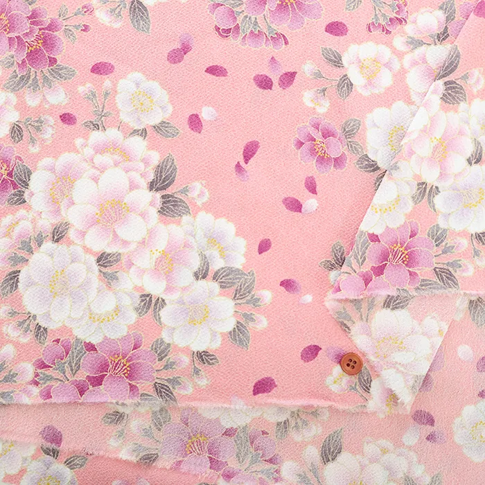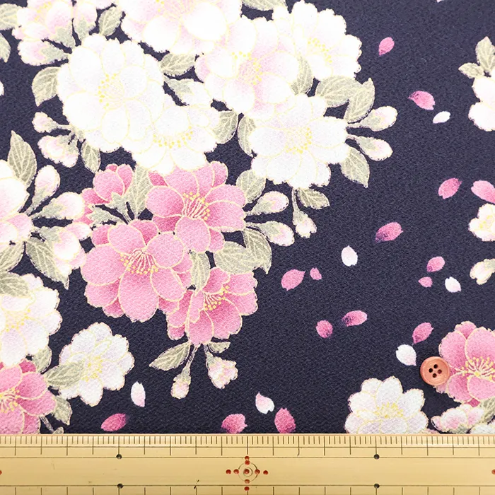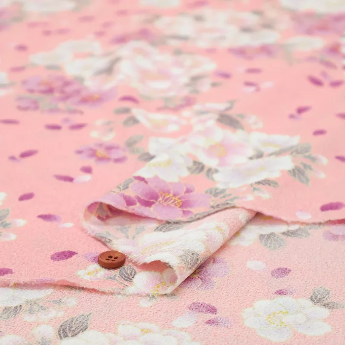 ポリエステル二越ちりめんプリント生地 八重の優
