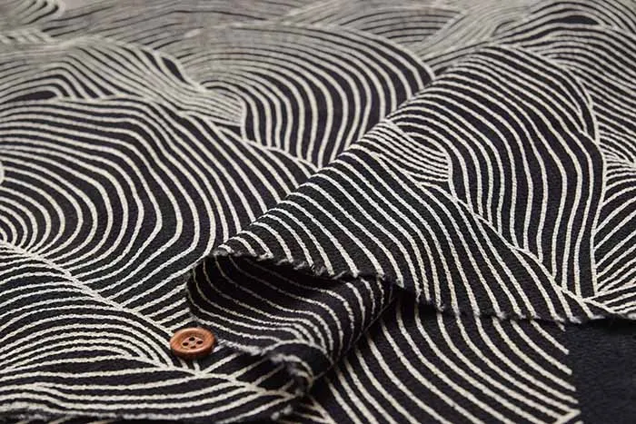 ポリエステルチリメンプリント生地 波