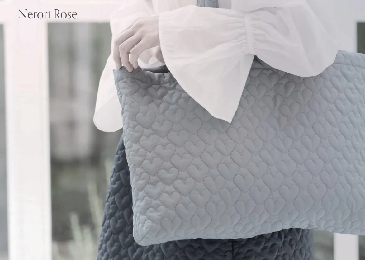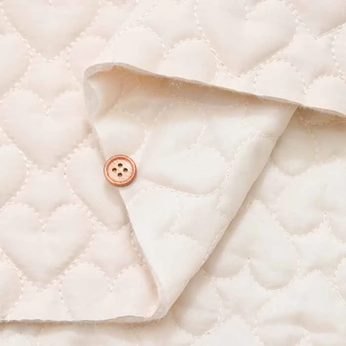 一般的な格子ではなく、ハート柄にステッチをかけたキルトです。