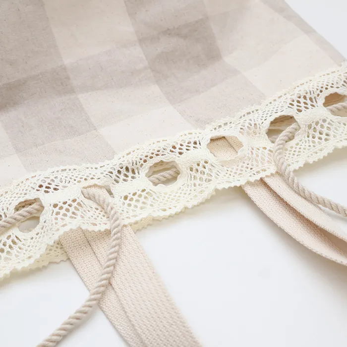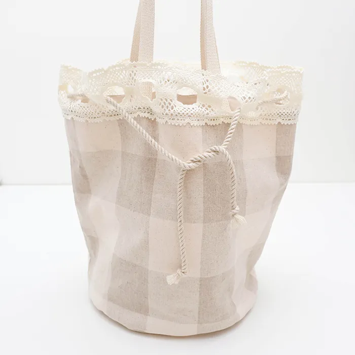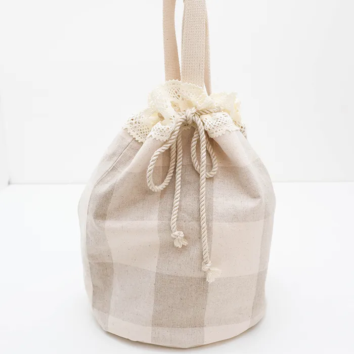 またバッグの口に縫い付け紐を通すだけで、簡単に巾着バッグを作ることもできます。