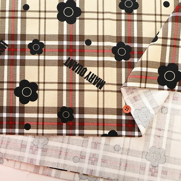 コットンオックスプリント生地 MARY QUANT タータンチェック