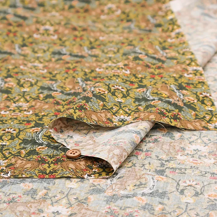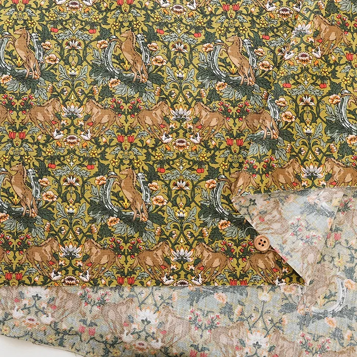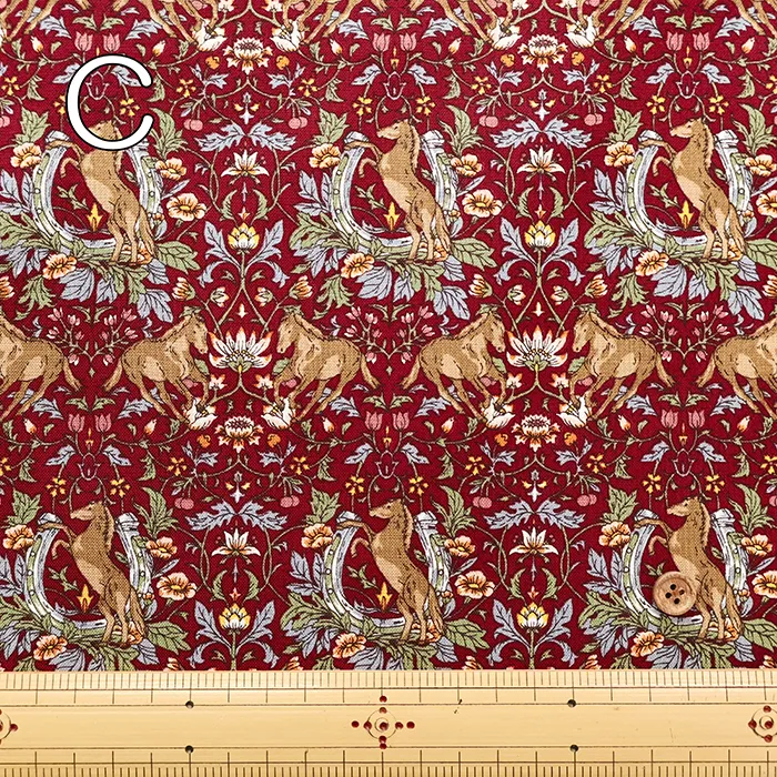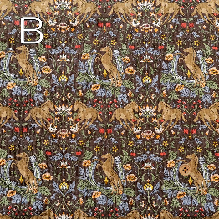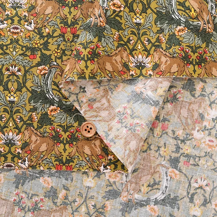 コットンシーチングプリント生地 フラワー&ホース