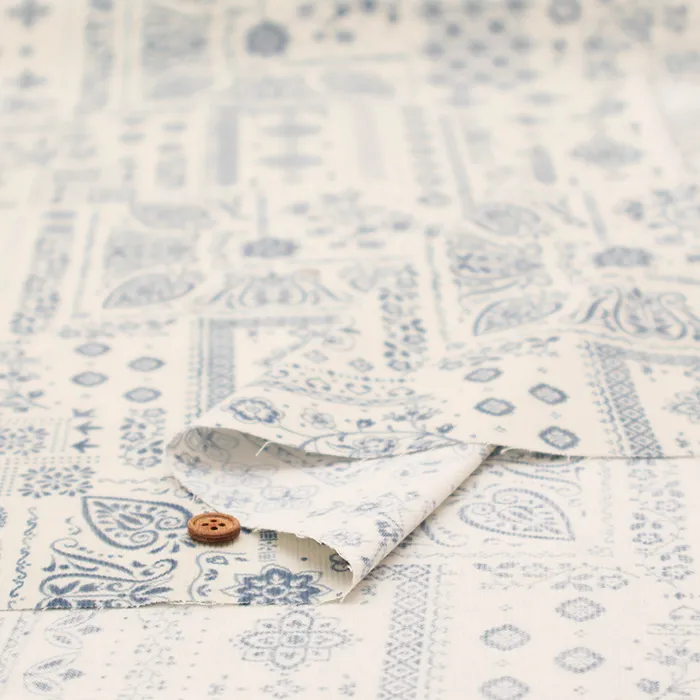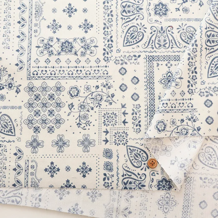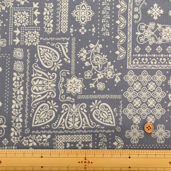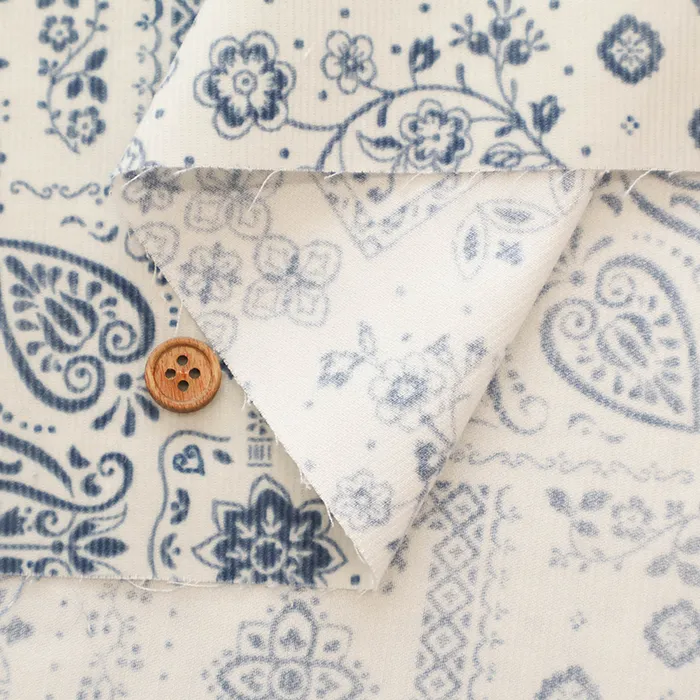 コットンコール天プリント生地 ペイズリー
