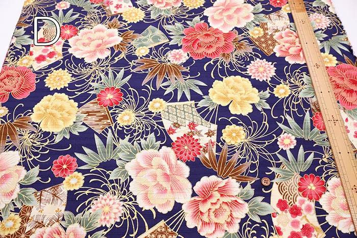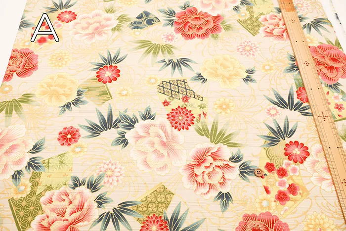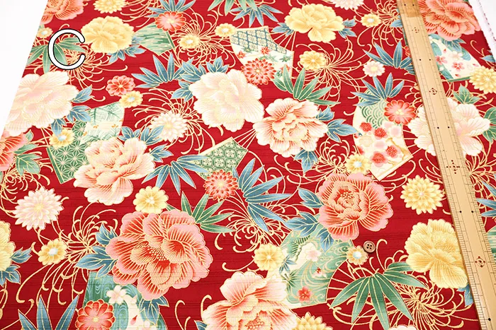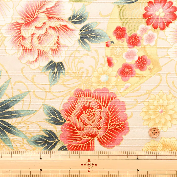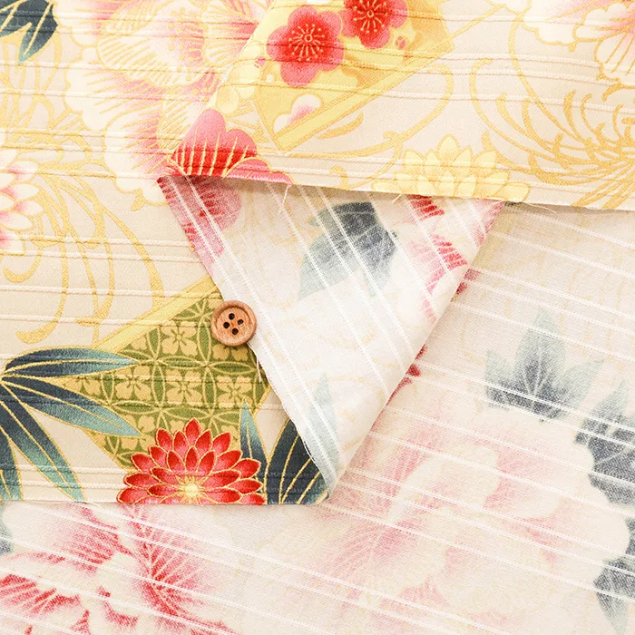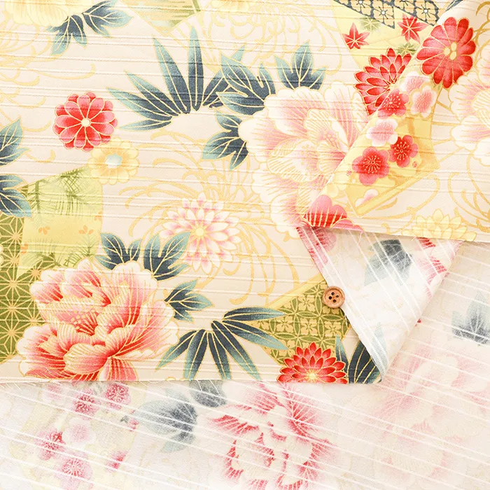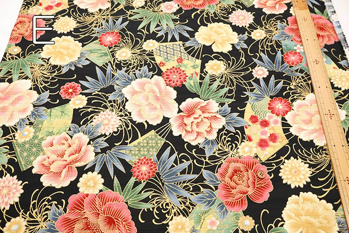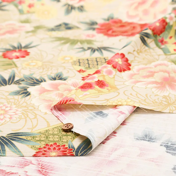 コットンサテンスラブプリント生地 華